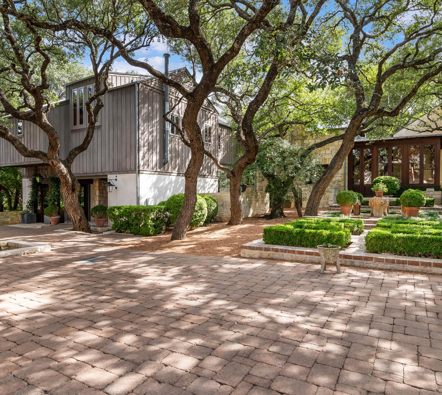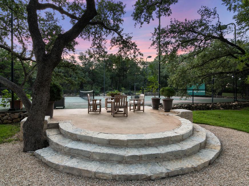 Enter the gates of this spectacular property and experience the beauty of the land, the architecture, and the serenity exuded in this Hill Country Village residence. The home was designed by renowned architect Don McDonald and consists of the main house, a guest house, a five-car garage, fountains, a tennis court, a pool, and multiple gardens within the privacy of ten acres. There is timeless elegance throughout the home including Ivory limestone floors, extraordinary wood floors, and reclaimed wood beamed ceilings. Throughout the home, the unique window and door frames are created from heavy wood. The expansive room sizes are notable. The abundance of natural light through the numerous windows and doors is impressive. The stunning views from the house and guest house look over the pristinely manicured acreage, the pool, and the fountains.