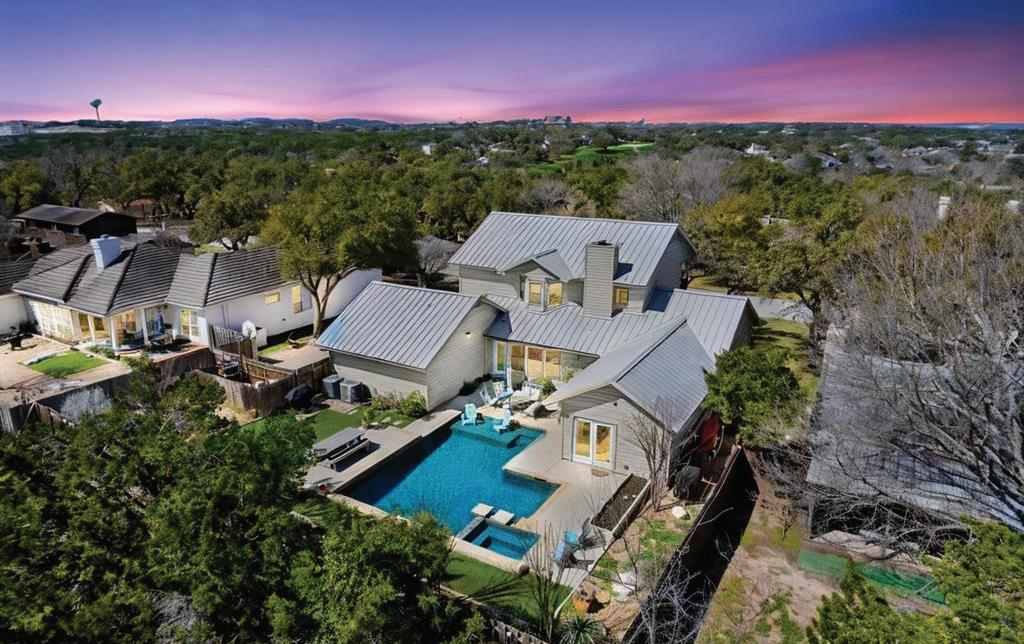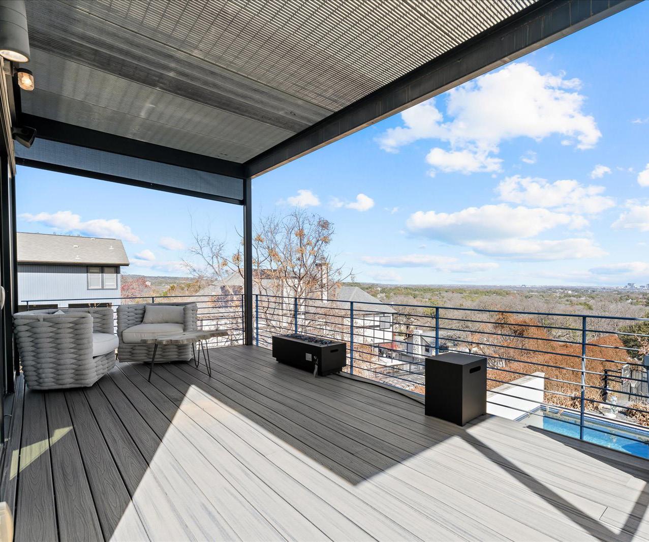 Designed for both function and elegance, this property boasts breathtaking downtown Austin and Hill Country views, multiple outdoor living spaces, and a two-story Accessory Dwelling Unit (ADU) perfect for guest accommodations or a private home office with skyline views. The backyard is a true retreat, featuring a heated pool and spa, a sport court, and a large, flat, fenced yard—ideal for entertaining, relaxation, and recreation.