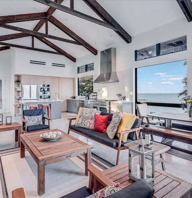 The main estate is a vision of elegance, with a grand stone-columned entrance leading into a spectacular foyer adorned with eastern aromatic cedar cathedral ceilings, hand-cut limestone walls, and custom wood cabinetry throughout. The state-of-the-art chef’s kitchen is outfitted with Wolf and Sub-Zero appliances, dual islands, double ovens, and enclosed wet bar. The expansive great room has a magnificent stone fireplace and breathtaking lake views. The opulent master suite features a fireplace, screened porch, spa-like bath, and dedicated office.