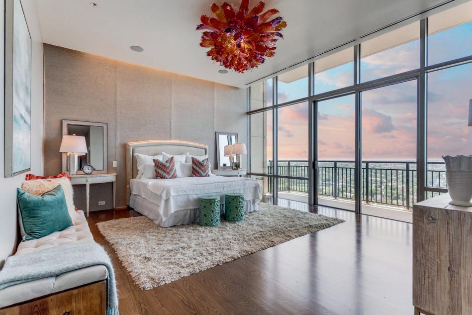 On the third floor, a secondary living space leads to a private terrace with breathtaking Downtown views, an outdoor kitchen, and a fireplace—an entertainer’s dream.