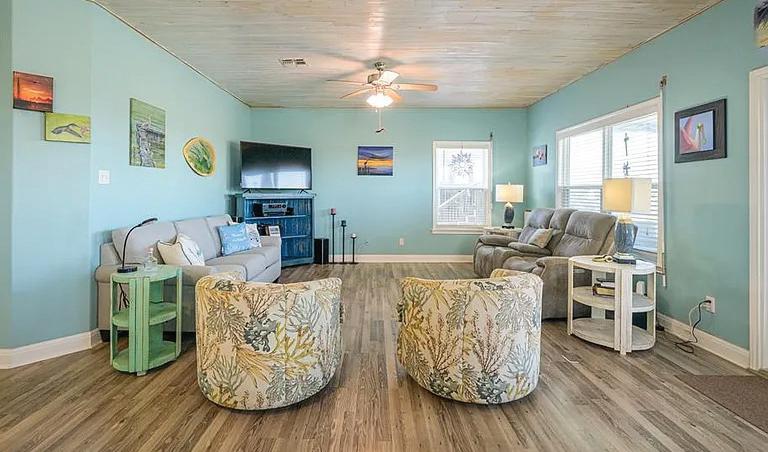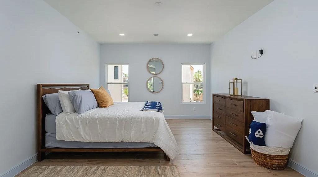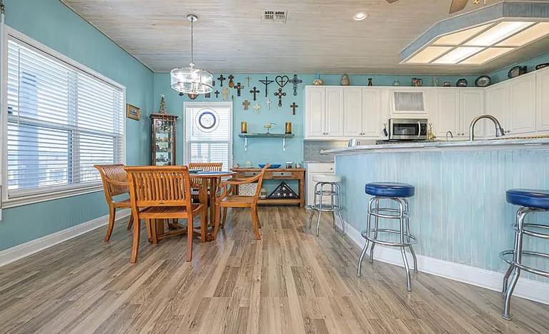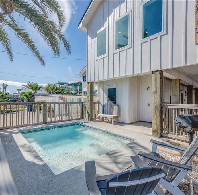 Sunrise Harbors is a detached condominium property located conveniently on tranquil 12th St. Two blocks from the beach and off Ave G in Old Town Port A. Unit D is and end unit with amazing sunrise views and a shady afternoon patio and pool area. There are only 3 cottages in the HOA, each one with dedicated parking and private pools. This unit is 4 bedrooms, 3 ½ baths with one of the bedrooms downstairs being a bunk room. Another secondary bedroom is found downstairs along with a stackable full size laundry closet. The primary suite is upstairs as is a secondary bedroom with a private full bath with shower. The primary bath has a luxurious bathtub and shower area as well as dual vanities and a water closet. There is a ½ bath conveniently found between the upstairs bedrooms for guests. Upstairs offers an amazing gathering space featuring high ceilings and open concept kitchen, dining and living areas. The flooring downstairs is a low maintenance stained concrete and upstairs features luxury vinyl plank flooring. The kitchen has stainless steel appliances, a gas stove and beautiful quartz countertops. Catch the sunrise in the morning on your nice sized patio right off the living and dining areas. This patio also overlooks your private heated pool and a glimpse of the gulf. Enjoy this amazing property all for yourself or you have the freedom to rent it with whatever management company you choose. It is turnkey and ready to go for the spring season. Don’t miss your chance to “Get On Island Time”!
