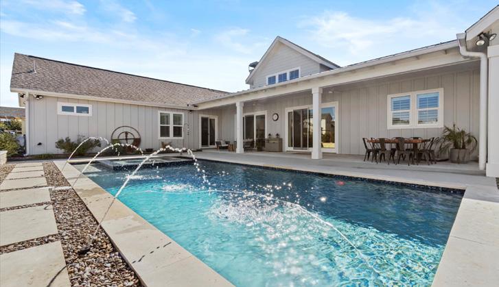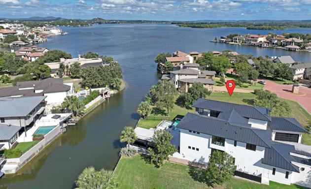 Experience Luxury Lakeside Living at 19801 Angel Bay Dr, Spicewood, TX. Welcome to this exceptional 5,668 sq ft estate in the exclusive Coves on Lake Travis, where elegance meets comfort on nearly 3 acres of private, hill country beauty. This 4-bedroom, 5.5-bath custom home is designed for both everyday living and unforgettable entertaining. Step inside to soaring ceilings, multiple living areas, and a chef’s kitchen equipped with top-of-the-line appliances, custom cabinetry, and a large island—the perfect gathering spot. The spacious primary suite is a true retreat with a spa-like bath featuring dual vanities, soaking tub, and separate shower. Each guest bedroom includes an ensuite bath for ultimate privacy. Enjoy movie nights like never before in the dedicated home theater, now upgraded with a brand-new Epson projector and Sony surround sound system.