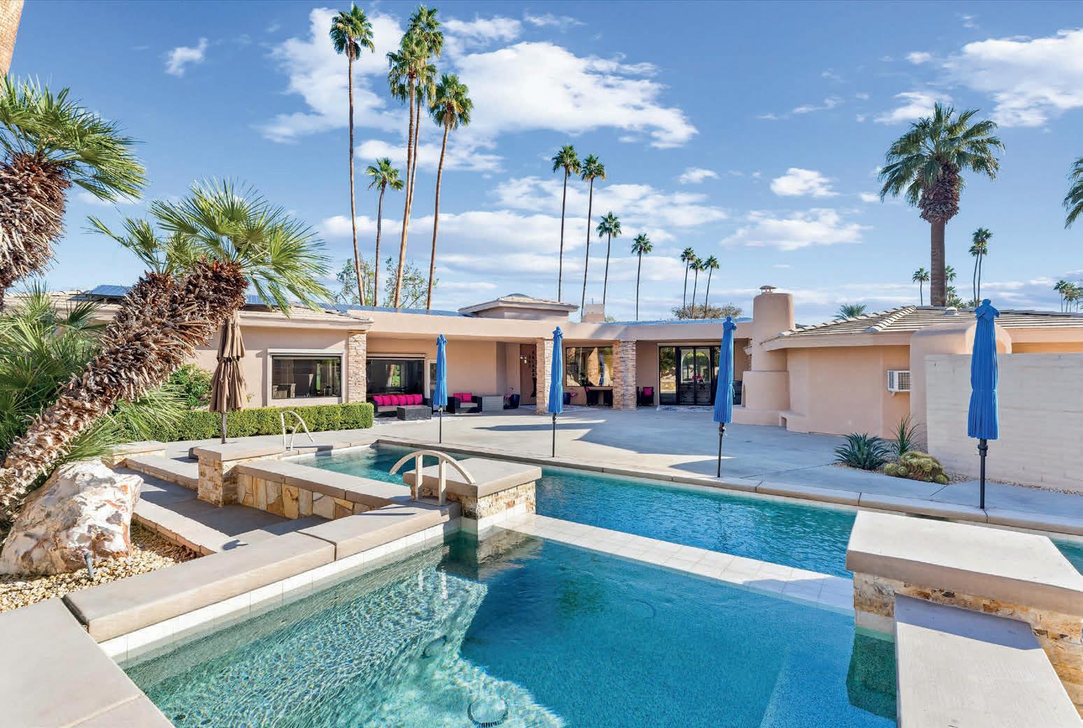 This exceptional estate was originally designed by the renowned William F. Cody (original architectural drawings available). Built by Thunderbird developer Johnny Dawson, it occupies one of the finest lots in the community, offering breathtaking views of the 9th fairway at Thunderbird Country Club. This home features a large living room, dining area, en suite bedrooms and baths, and an air-conditioned 3-car garage. The remodeled chef’s kitchen is a true standout, boasting a large “waterfall” island, custom cabinetry, and premium Wolf/ Sub-Zero appliances. In 1999, special HOA permission was granted to build the 16-foot-high entrance foyer with an oversized skylight, adding a sense of grandeur to the home. Truly one-of-a-kind within Thunderbird Estates. Known as one of the Coachella Valley’s most prestigious and historic gated communities.