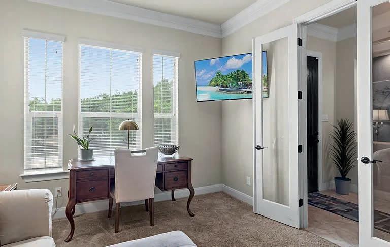 Sitting on one-and-a-half lots, this Mediterraneanstyle home is one of the most stunning on South Padre Island. The island home builder’s personal family retreat boasts thoughtful design with terracotta tile floors that flow throughout and lead to fabulous balconies offering serene views. The private backyard pool is a tropical oasis, perfect for relaxing and entertaining. Inside, the open floor plan includes a spacious office, library, and game room, providing ample space for every need. Having earned “Yard of the Month” twice in one year, this home stands as a true testament to island living at its finest.