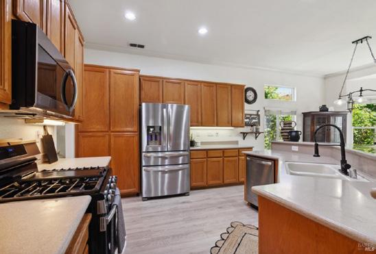 BEAUTIFULLY REMODELED AND MOVE-IN READY! This fantastic floorplan boasts 5 bedrooms plus a large flex room. The heart of the home is the remodeled chef’s kitchen, a masterpiece of design featuring stainless appliances, quartz countertops, and ample custom cabinetry. It flows seamlessly into the main living areas, where gleaming wood flooring and fresh, designer paint create a bright, contemporary, and inviting atmosphere. The spacious primary suite offers vaulted ceilings, cozy fireplace and access to the magical rear yard. Experience resort-style outdoor living in your own backyard. The space has been transformed with perfectly curated landscaping, a new deck for entertaining, and a spectacular outdoor kitchen for the ultimate setting for al fresco dining and California gatherings. Beyond the aesthetics, this home offers significant practical advantages, including owned solar for dramatically reduced energy costs and a spacious 3-car garage providing abundant storage and parking. Located in the sought-after Ridgeview neighborhood with top-rated schools, this is more than just a house, it’s a lifestyle upgrade. Don’t miss the opportunity to own this exceptional blend of indoor luxury and outdoor perfection.
