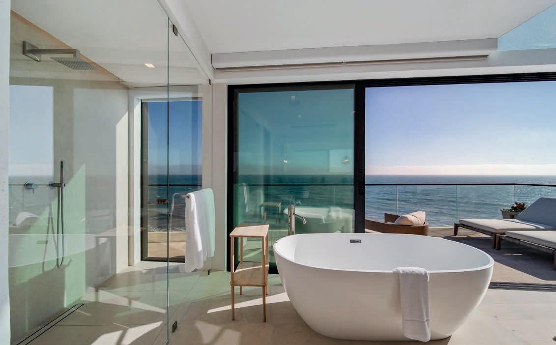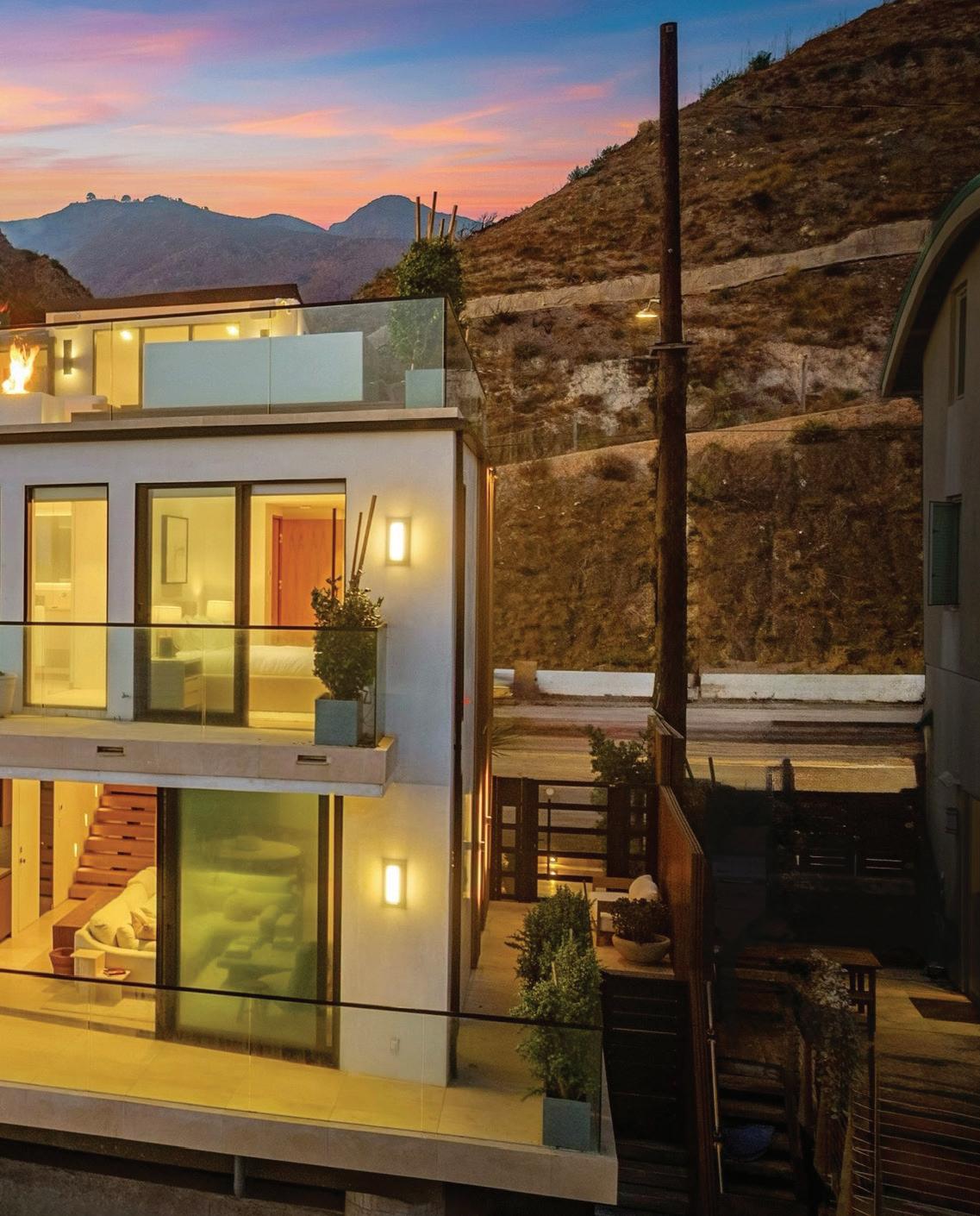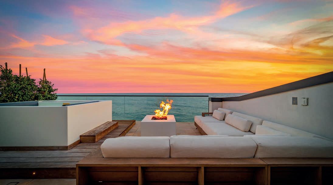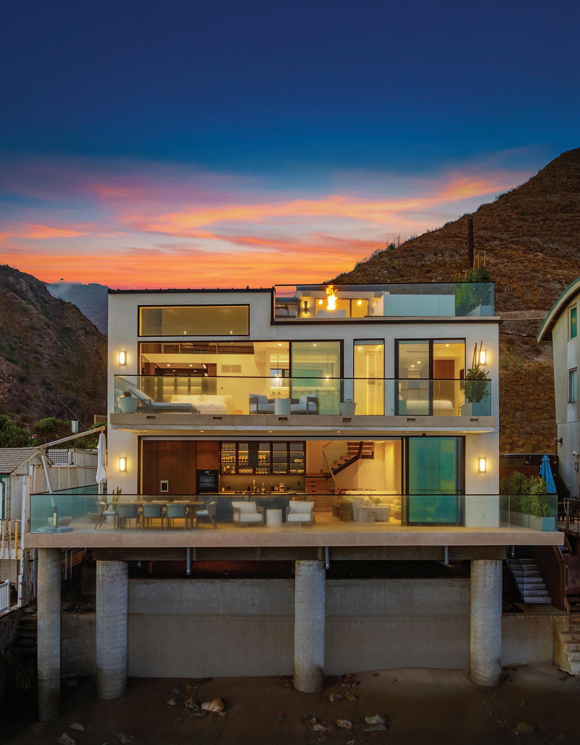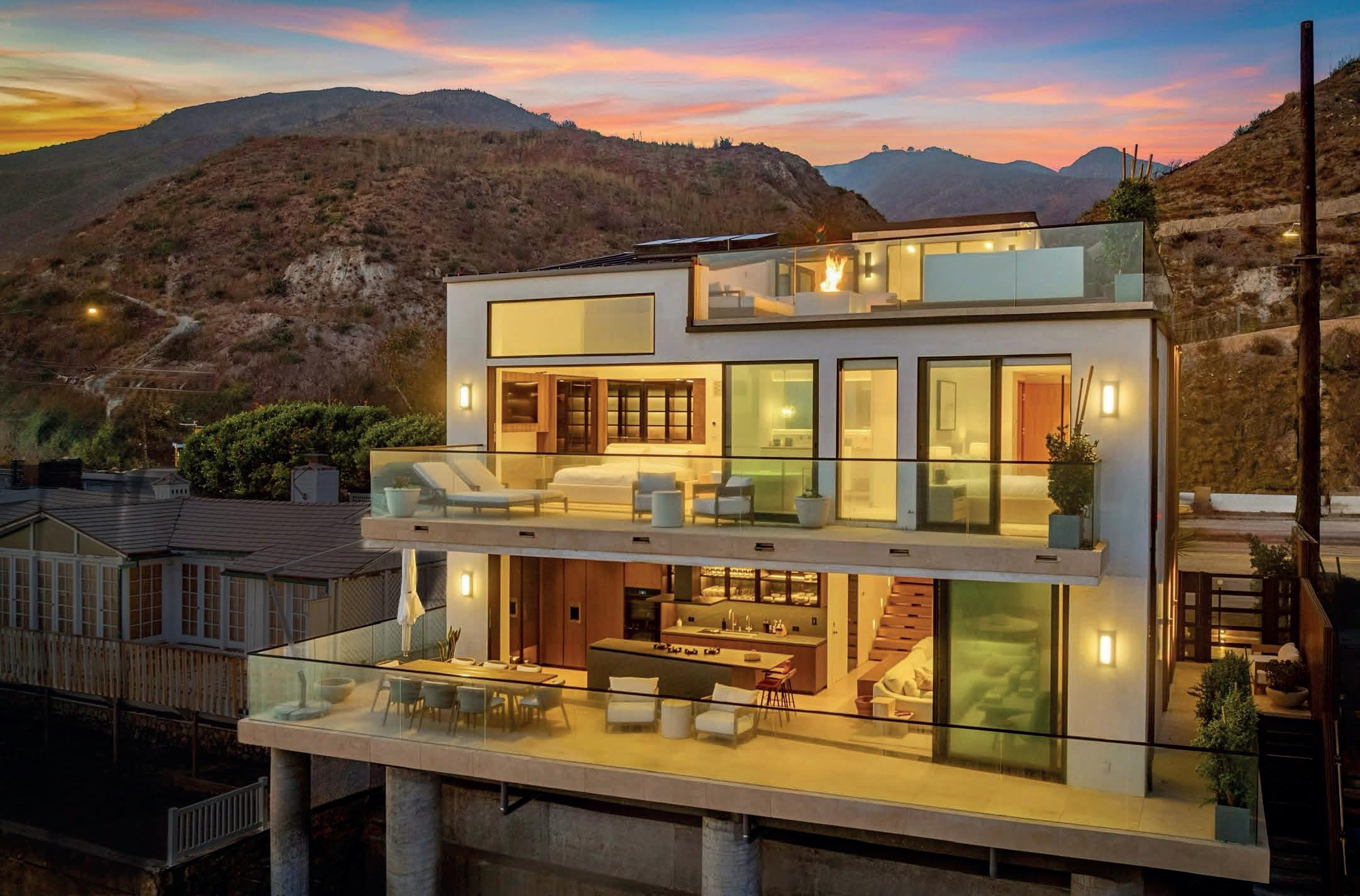 Experience unparalleled coastal living in this newly constructed contemporary masterpiece by Atelier Architects, perfectly situated between Santa Monica and Malibu Country Mart. Completed in 2022, this luxury beachfront residence features a striking steel-frame design and boasts an impressive 57 feet of Pacific beachfront, where the distinction between indoor and outdoor spaces blurs seamlessly together. Blending modernist principles with coastal sophistication, the home’s carefully curated palette of materials, including wide-plank walnut floors and natural limestone surfaces, creates a warm and timeless interior that flows effortlessly from room to room, while floor-to-ceiling Fleetwood doors retract completely to create an unobstructed flow onto generous coastal terraces framed by an ultra-modern fireplace with panoramic views of city lights. The open-plan kitchen anchors the home with a commanding stone-topped island and top-ofthe-line Miele appliances, with warmth and craftsmanship evident throughout, from the luxurious, soft-touch storage to the sleek wine display, while upstairs three tranquil bedroom suites await, each with spa-like limestone baths, including the impressive primary suite with its double-height ceiling, fireplace, private oceanfront deck, Italian leather-lined closets, and showpiece bath designed for indulgence featuring a deep spa soaker tub set to the sea and a glass-encased, ocean-facing rain shower that delivers a true spa experience. A versatile loft space offers flexible options for quiet study, creative work, exercise studio, or relaxation, while smart home technology streamlines daily living with integrated automation for lighting, climate, security, audio, and automated window shades throughout, culminating in the rooftop deck outfitted with marine-grade appliances, integrated fire pit, and spa that becomes a sublime outdoor room framing full 360-degree ocean views, with private stairs leading directly to the sandy beach below. Extraordinary beachfront sanctuary with tremendous income-generating potential for discerning investors. This architectural gem stands as a refined interpretation of California’s legendary indoor-outdoor lifestyle, where every detail, from rising sightlines to material harmony, celebrates a seamless, elevated dialogue between home and coast.