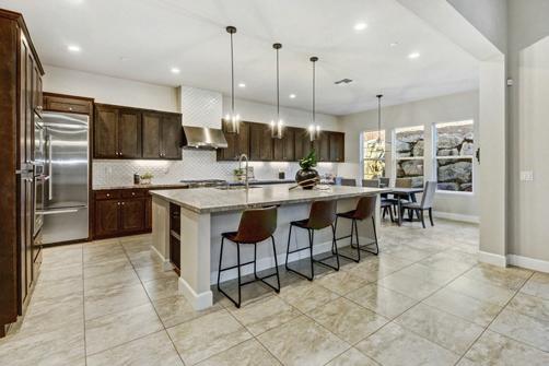 LAKE VIEWS! Step into the pinnacle of luxury with this brand-new, custom-built masterpiece, perfectly situated within Serrano Country Club. This residence blends dramatic elegance with functional living across a spacious, open floor plan featuring 4 bedrooms, a dedicated home office, & an upstairs flex room w/balcony. Fall in love with this dreamy chef’s kitchen, boasting a top-tier appliance pkg that incl. impressive 30-inch built-in Thermador refrigerator/freezer towers and a separate, full-height wine tower. An adjacent back scullery kitchen provides a secondary refrigerator and prep space, keeping the main kitchen pristine. Entertain in the formal dining room, which is elevated by the floor-to-ceiling glass wine storage. The stunning primary suite is a private sanctuary w/sweeping views of Folsom Lake, custom fireplace, and a spa-quality bath featuring a soaking tub, a grand walk-in shower & massive, custom-designed closet. Perfect for multi-generational living, the main floor junior suite offers spa-like bathroom, walk-in closet, and private exterior access to the pool area. The home is highlighted by Sierra Pacific wood windows & doors that frame the picturesque rear yard that inc. covered loggia, outdoor kitchen, pool, spa and firepit area. 4 car garage and owned solar!
