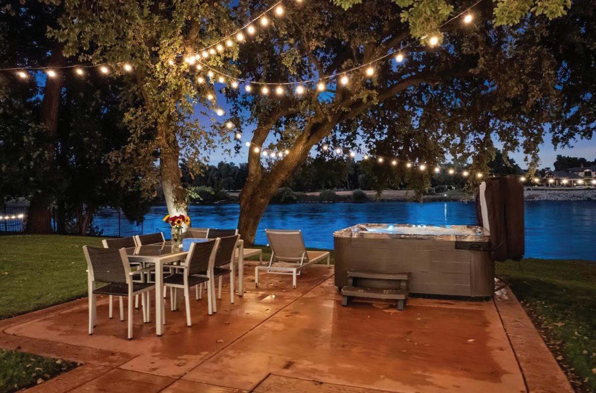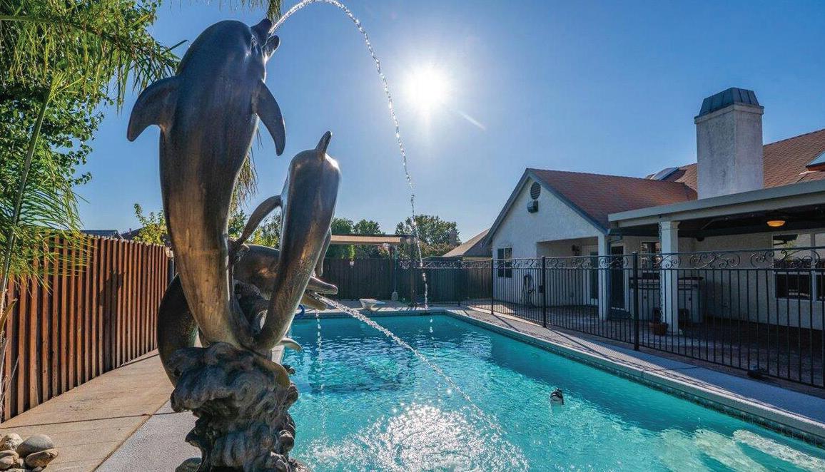 OWNED SOLAR! Ask your agent for a list of upgrades. Spectacular McCaffrey custom home in the exclusive Bellaviera neighborhood, offering panoramic views of the Bluff, Lake San Joaquin River, Sierra Nevada mountains, and sparkling city lights. Enter through olive tree-lined cobblestone paths into a masterpiece of craftsmanship - soaring vaulted ceilings, large porcelain tile with stone inlay, wrought iron stair rails, and Dentil style crown molding & other custom features throughout. The gourmet kitchen features custom cabinetry, granite countertops, a convenient island breakfast bar, and a custom crafted range hood. The primary suite opens to a private balcony, the perfect spot to take in the breathtaking scenery. Designed for entertaining, the backyard showcases a built-in BBQ island, sparkling pool with a waterfall, majestic lion water features, and a charming gazebo dining area. Additional highlights include OWNED SOLAR, two heat pumps, RV/Boat parking, electric car charger, surround sound, and a lot size of nearly 1/3 acre. A rare blend of luxury, function, and unforgettable views - truly one of a kind!