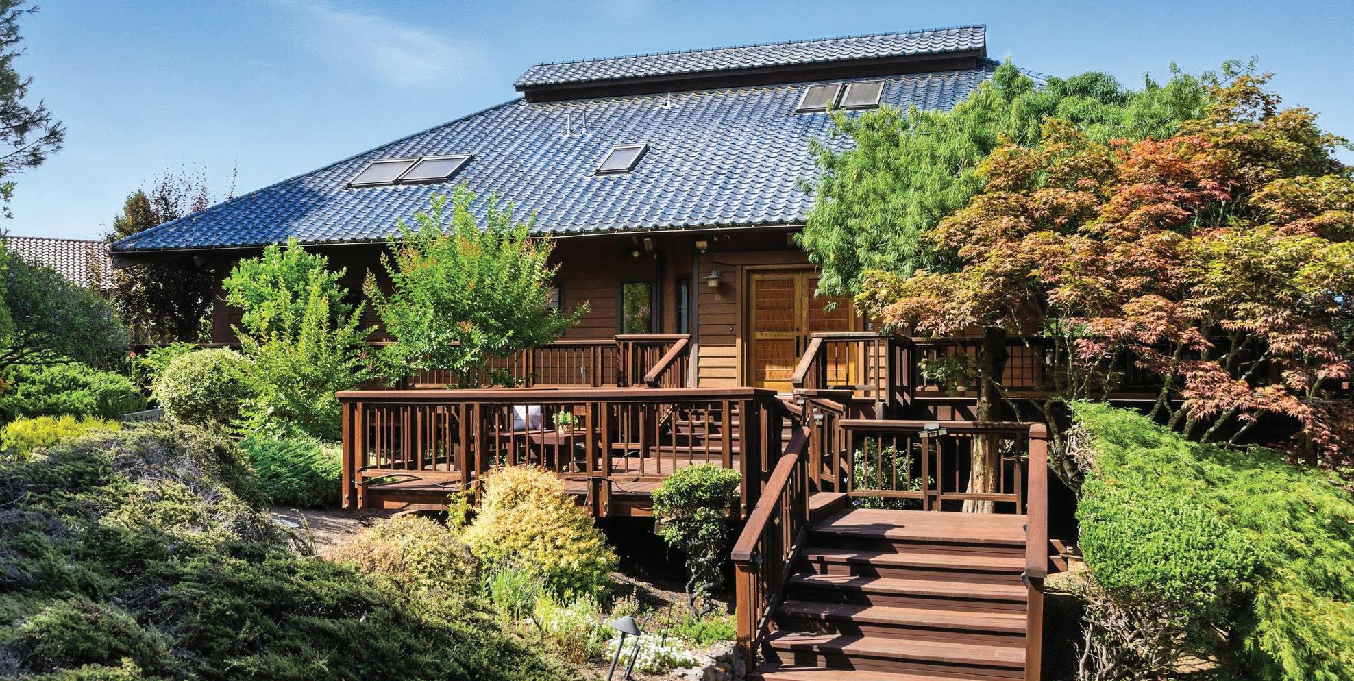 4 beds | 3.5 baths | 2,691± sf home | 750± sf guest apartment | 2.6 acres. As you enter this extraordinary gated Los Gatos property, it’s immediately clear that this is unlike anything else on the market—an architectural retreat inspired by a 16th-century Japanese farmhouse built to stand the test of time. Set on 2.6 private acres, the main home was constructed using traditional Japanese-style pole-and-beam engineering for seismic resilience, anchored by 15 massive Douglas fir poles, each two feet in diameter and approximately 5,000 pounds, sunk 15–18 feet into the ground to provide unmatched strength and flexibility. The property is thoughtfully equipped with modern infrastructure, including a full-house backup generator, fire sprinkler system, private well, and rainwater collection system supported by multiple storage tanks.