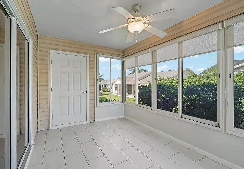 Step into style, comfort, and convenience with this immaculately maintained Amarillo model—a true gem boasting a rare 3-car garage complete with indoor/outdoor carpeting, built-in inground safe, and upgraded attic storage with flooring and exhaust fan for added ventilation. Inside, the charm continues with a fresh, neutral color palette that highlights the open layout. The enclosed lanai is under air, offering a year-round space to relax and unwind. The kitchen features granite countertops, stainless steel appliances, and upgraded Bahama shutters, all tied together with NO carpet for low-maintenance, modern living. Enjoy the benefits of a Whole House Nova Water Filtration System, soft-close toilets (installed 2022), and a beautifully upgraded primary ensuite with sleek, contemporary finishes. Smooth ceilings (no popcorn texture) add to the refined, clean look throughout the home. White ceramic tile flooring is featured throughout the house, except in the guest rooms, where Luxury Planked Vinyl Flooring is used. Major updates include new outdoor lighting under the eaves, a newer roof (installed in 2022), an HVAC system with AprilAire filtration (also installed in 2022), and a new hot water tank (installed in 2023)—providing comfort and peace of mind for years to come. Outdoors, a doggy run adds a perfect touch for pet lovers, while the prime location provides golf cart access to everything you love about The Villages— including Lake Sumter Landing, Brownwood Paddock Square, 466A shopping, top-rated golf courses, and vibrant recreation centers. This home is truly move-in ready and packed with upgrades. Don’t miss your chance to enjoy the Villages lifestyle in style and comfort. Schedule your private showing today and make this dream home your reality!