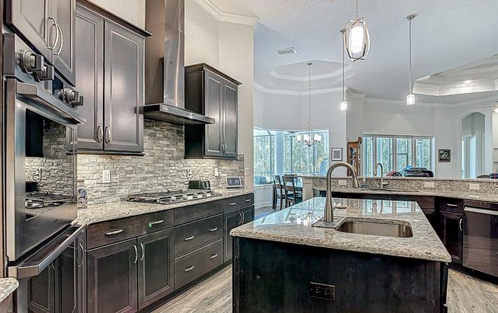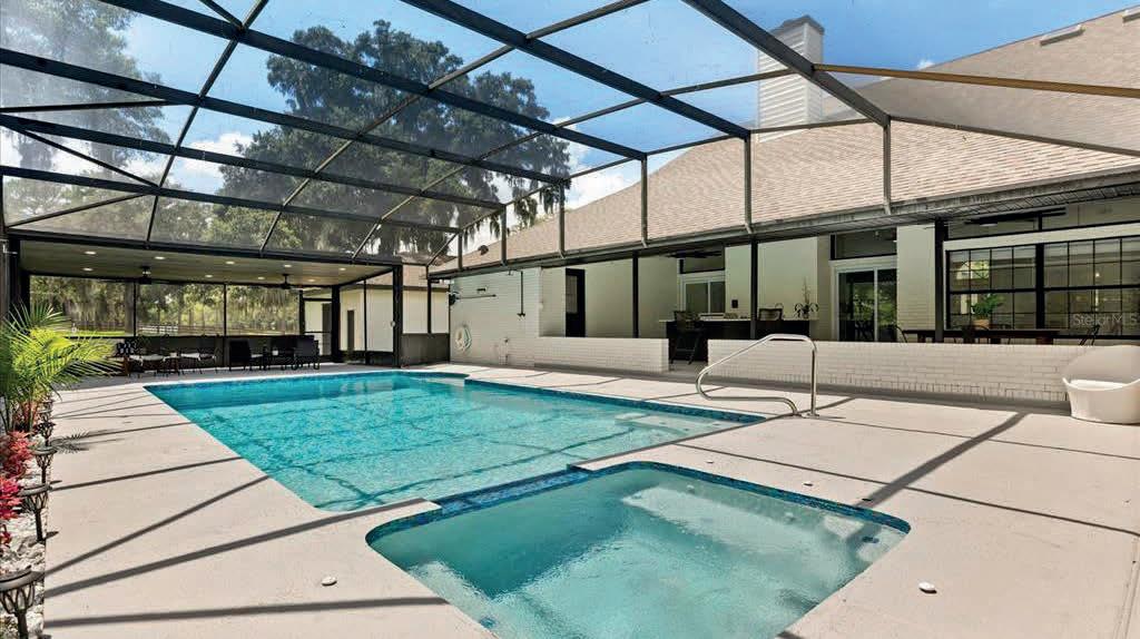 5 Beds | 5 Baths | 4,770 Sq Ft | $1,200,000 EXECUTIVE-STYLE home offers SPACE, PRIVACY, and high-end features, located in a GATED community and just over 1 ACRE. A three-car GARAGE, screen-enclosed, in-ground POOL with spa, and thoughtful updates throughout make this property move-in ready. The home has been extensively updated, including a refreshed exterior and interior color palette, major first-floor remodeling, and new wood flooring. The layout is ideal for both family living and entertaining. An impressive covered front entry opens to a grand foyer with seating and space for a piano. The remodeled dining room features a striking chandelier and comfortably accommodates larger gatherings. The kitchen has been fully redesigned to improve flow and functionality, with new cabinetry (including glass-front uppers), a work island with sink, walk-in pantry, coffee bar, and stainless appliances. The 15x11 breakfast room offers ample space and overlooks the rear yard and pool. The living room features a 21-foot ceiling, custom built-in wall unit, gas fireplace, and expansive views