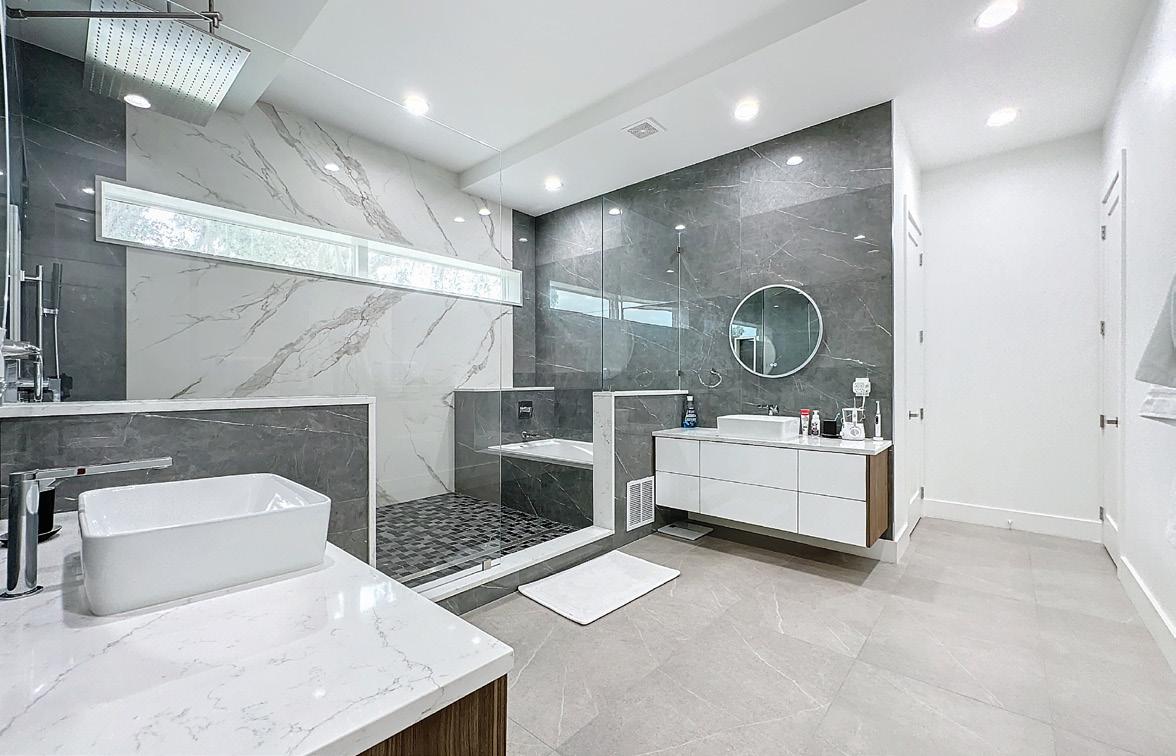 The primary suite is a true sanctuary, featuring a private study, dual walk-in closets, french doors with pool access and a spa-inspired bath. Each guest suite enjoys its own modern en-suite bath, including one with direct pool access and a walk-in shower perfect for guests or multi-gen living.