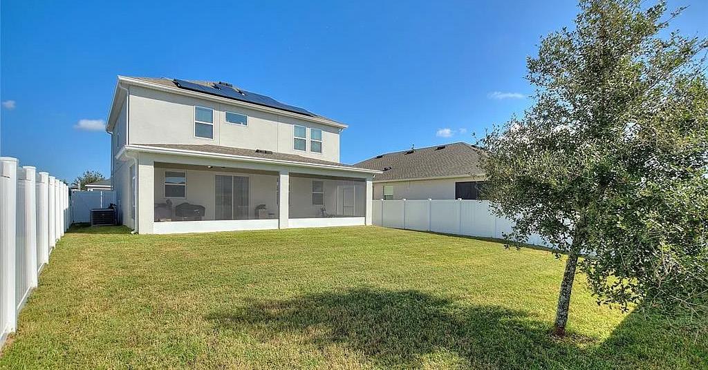 Full photos coming. This 4 Bedroom. 2 1/2 Bath, 2 Car Garage is waiting for you to be the “New Family”. The 1st floor has the Living Room, Kitchen, Dining Room, and the 1/2 Bathroom. The 2nd floor has all 4 Bedrooms, the Master & Guest Bathroom, Family Room/Upstairs Landing area and the Laundry Room. To the rear there is a large covered lanai ,fully screened looking out on to a very spacious and fenced back garden. Additionally the property benefits from fully paid solar panels which convey with the sale. The property is located close to just about everything facility the Central Florida area has, but far enough out for a bit of peace and quiet.