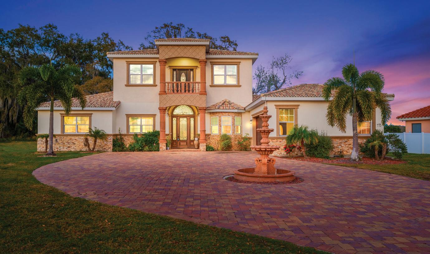 Experience unmatched luxury in this stunning Mediterranean Tomoka Riverfront estate. Set on 2.39 acres of natural beauty, this exquisite property was expanded and recreated in 2007 to feature a masterfully configured main house that leads to two charming guest quarters, beautifully landscaped patios, all offering breathtaking views of the serene surroundings. The captivating custom-designed interiors truly showcase every space with artisan touches and finishes that transcend time and trends. The gourmet kitchen is a culinary connoisseur’s delight that is masterfully designed with elegant finishes, perfect for hosting memorable gatherings. Upstairs, discover four spacious en suite bedrooms, each boasting generous walk-in closets and private balconies that provide tranquil views and moments of peace. Travertine porches, patios and walkways flow seamlessly from the home to the sparkling pool area, where Italian marble columns and lion fountains offer sophistication that is seldom seen.