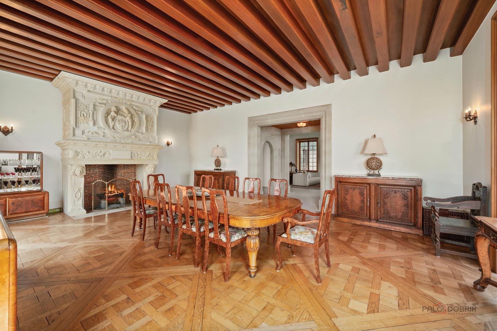 Experience the distinctive charm of this English Manor-an extraordinary architectural gem that flawlessly unites classic sophistication with exquisite attention to detail. Set on 52 breathtaking acres, this one-of-a-kind estate offers a harmonious balance of sophistication and serenity in a setting that simply cannot be replicated at this price. Nestled in a secluded, park-like environment just an hour and a half north of Chicago, the property feels like a European escape without ever leaving the Midwest. From the moment you enter, the attention to detail is apparent. The interior boasts eight exquisite French limestone fireplaces, each a replica of those found in historic French chateaux and installed by master stone carvers from France and England. Beamed ceilings imported from England and hand-laid limestone and wood floors from France infuse the home with warmth and Old World charm. A team of dedicated European artisans ensured that every finish reflects a commitment to quality and authenticity. The home’s structural integrity matches its aesthetic beauty. Built with 12-inch reinforced concrete blocks and 6-inch insulated interior walls, the estate offers exceptional durability and energy efficiency. Radiant heated floors span the entire home, laid over both poured and precast concrete for long-lasting comfort. The exterior and select interiors feature stunning Indiana limestone, while a roof of imported French clay tiles adds to the manor’s timeless character. A partially finished walkout basement spans over 7,800 square feet and includes three potential bedrooms, multiple bathrooms (including one finished half-bath), a kitchen, living room, garage, laundry room, and a wine cellaroffering incredible potential for customization.