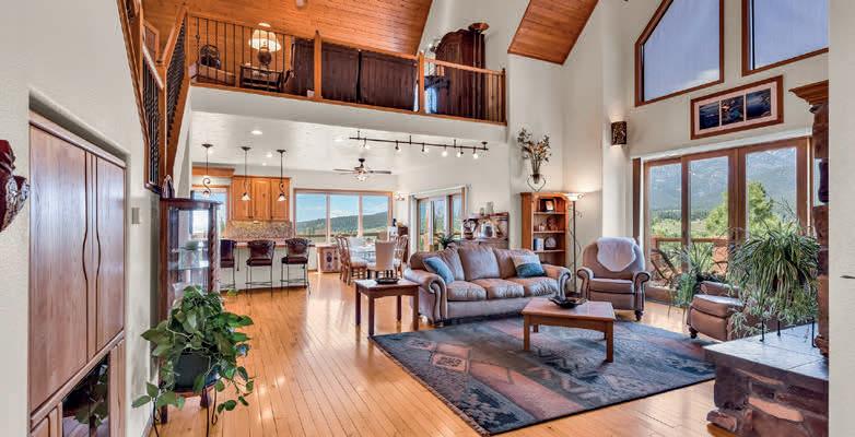 Nestled on 40 breathtaking acres, this stunning 4-bedroom, 4-bath custom home offers more than 4,000 sq ft of living space and panoramic views of the Colorado mountains, changing seasons, and abundant wildlife. With a private pond, soaring ceilings, and a dramatic wall of windows, every room captures the natural beauty surrounding this retreat. The open-concept main level features a spacious kitchen with wraparound countertops and bar seating, flowing into a dining area and great room anchored by a stone fireplace with sweeping views. The main-floor bedroom allows you to enjoy the main floor rooms, deck access, and serene views. A second kitchen and private entry in the walk-out basement opens up the potential for multigenerational living or a separate guest suite—perfect for extended family or rental income. The upstairs primary suite offers a private retreat with its own cozy family room and access to a small deck—perfect for sipping morning coffee while taking in the stunning mountain views. Inside the suite, you’ll find a spacious walk-in closet and a beautifully appointed en-suite bath featuring a large soaking tub and separate shower, creating a true spa-like experience. Additional features include a cozy loft with mountain views, vaulted tongue-and-groove ceilings, laundry with a pet-friendly wash station, and unfinished space to create your dream studio, gym, or workshop. Enjoy peaceful mornings on the expansive deck, explore your own slice of paradise, or simply relax by the pond. This one-of-a-kind mountain property blends comfort, functionality, and aweinspiring scenery—just minutes from amenities, yet offering the privacy of rural living.