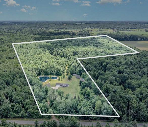 A Rare and Remarkable Find 60 Wooded Acres of Privacy and Possibility. Tucked away from the road and surrounded by 60 acres of wildlife-rich woods, this secluded property is a true hidden gem. A gated entrance and concrete drive lead to a ranch-style manufactured home set in a peaceful clearing, perfectly positioned to overlook a scenic pond with its own sandy beach. Thoughtfully designed for both comfort and functionality, the home offers 3 bedrooms and 2 full baths. One bedroom, located just off the living room, makes an ideal home office or den. The well-maintained interior features an updated dining area with LVP flooring and a door wall to the composite deck. The kitchen comes fully equipped with appliances included. A split floor plan ensures privacy for the spacious primary suite. The laundry room conveniently connects to the attached 2-car garage with opener and space heater. Storage and hobby space are abundant with several well-planned outbuildings. The insulated and heated pole barn offers 220V power, while an adjacent workshop features an overhead door and electric. A wood storage shed connects to a charming sugar shackmaple syrup cooker included. Two additional storage buildings, one with a large lean-to, provide even more covered space. A shingled chicken coop with window, a garden area with three types of berries, and a concrete-floored dog kennel add to the homestead appeal. The pond is home to turtles and frogs and has a beach for relaxing days outdoors. The wooded acreage includes a mix of maple, oak, and birch, with the Little Cedar Creek meandering through and a bridge for easy access across. This is a one-of-a-kind opportunity for buyers seeking privacy, nature, and self-sufficiency. Extras like the wholehouse Generac generator only add to the value and peace of mind. Pre-approved buyers schedule your tour today. Your dream homestead awaits!