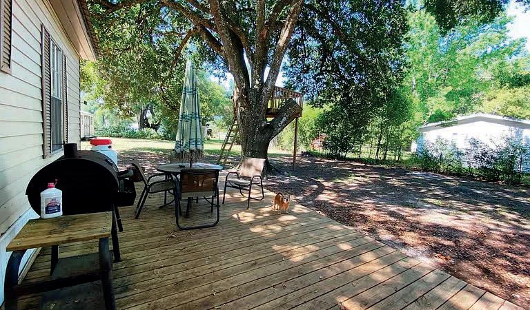 Welcome to your private paradise! This 1.4 acre property boasts a gorgeous home, a 200 sq ft detached dwelling for guest or office, a Har-Tru clay tennis court, lap pool with jacuzzi, 2 car detached garage... ALL nestled in a grove of oaks and beautiful landscaping. The inside of the home has been updated, including new paint throughout, all new hardwood oak floors, new marble kitchen counters and backsplash, new built-in eat in kitchen dining room, all new lighting, updated bathroom, new closet by design for master bedroom closet. All new landscape and pavers throughout property. Custom lap pool and jacuzzi were installed in 2023. New irrigation. The home is an open floor plan and features a gorgeous kitchen with large island, opens up to the spacious great room with gas fireplace and herringbone tile from Italy which accents the fireplace mantle. The master bedroom is 16x19 and has a large tub with separate shower and large walkin closet. Other two bedrooms have their own bathroom and large closets and there’s also a 1/2 bath. When you’re not relaxing on the inside of this comfy home you can enjoy the over 600 sq ft screened in porch with wall mounted TV and wood burning fireplace overlooking the lush, dreamy back yard. Large laundry room. Outdoor shower. Hookup for full home generator. The garage is over sized and there is room to park a RV/Boat. NO HOA. Small livestock allowed (Chickens). High and Dry. Close to boat ramps, shopping, dining and excellent schools. This property has endless possibilities!!