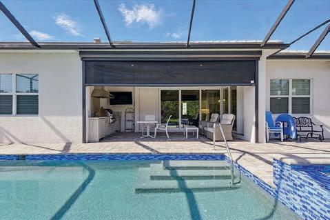 Step outside to discover an entertainer’s paradise. The custom outdoor bar features a sink, wine fridge & high-end grill, ensuring effortless outdoor entertainment. The private backyard, bathed in natural light, provides the perfect backdrop for peaceful evenings. Indulge in quiet moments by the cozy fireplace, an ideal spot to unwind and immerse yourself in the beauty of the surrounding nature. With stunning views of the protected southern preserve, this extended lanai transforms into a serene oasis where you can escape from the world.