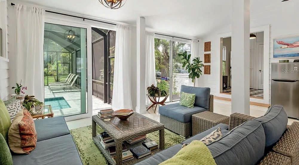 405 Rudder Road in Naples, Florida, is a stunning coastal residence located in the exclusive Moorings neighborhood. This beautifully designed home offers 4,405 sq ft of elegant living space on a lush 0.39-acre lot. Built in 2003 and recently updated, the property features four bedrooms, including two ensuite master suites, along with three full bathrooms and one half bath. Inside, the designer-decorated interiors blend luxury with comfort, featuring a state-of-the-art kitchen equipped with top-tier Miele appliances. The spacious layout includes a den, a loft, and a balcony overlooking the sparkling pool. High ceilings and large windows bring in natural light, creating an inviting and open atmosphere. The outdoor space is just as impressive, boasting a tranquil front yard pond, tropical landscaping, and a private courtyard with a heated gas pool, spa, and outdoor shower. A whole-house generator ensures uninterrupted comfort. Residents of this home enjoy access to the exclusive Moorings Private Beach Club, offering a pristine beach experience just minutes away. The property is also conveniently located near the upscale shopping and fine dining of 5th Avenue and 3rd Street, making it an ideal retreat for those who appreciate the best of Naples living. Listed at $4,200,000, this exceptional home offers luxury, privacy, and prime location in one of Naples’ most sought-after communities.