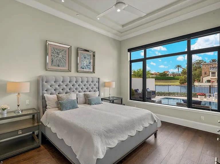 The primary suite is a private retreat with sweeping views of the water, a spa-inspired bath, and an air of tranquility that defines the entire residence. Three additional ensuite guest rooms offer comfort and privacy, while a spacious bonus room with water views provides flexible accommodations for guests or extended family.
