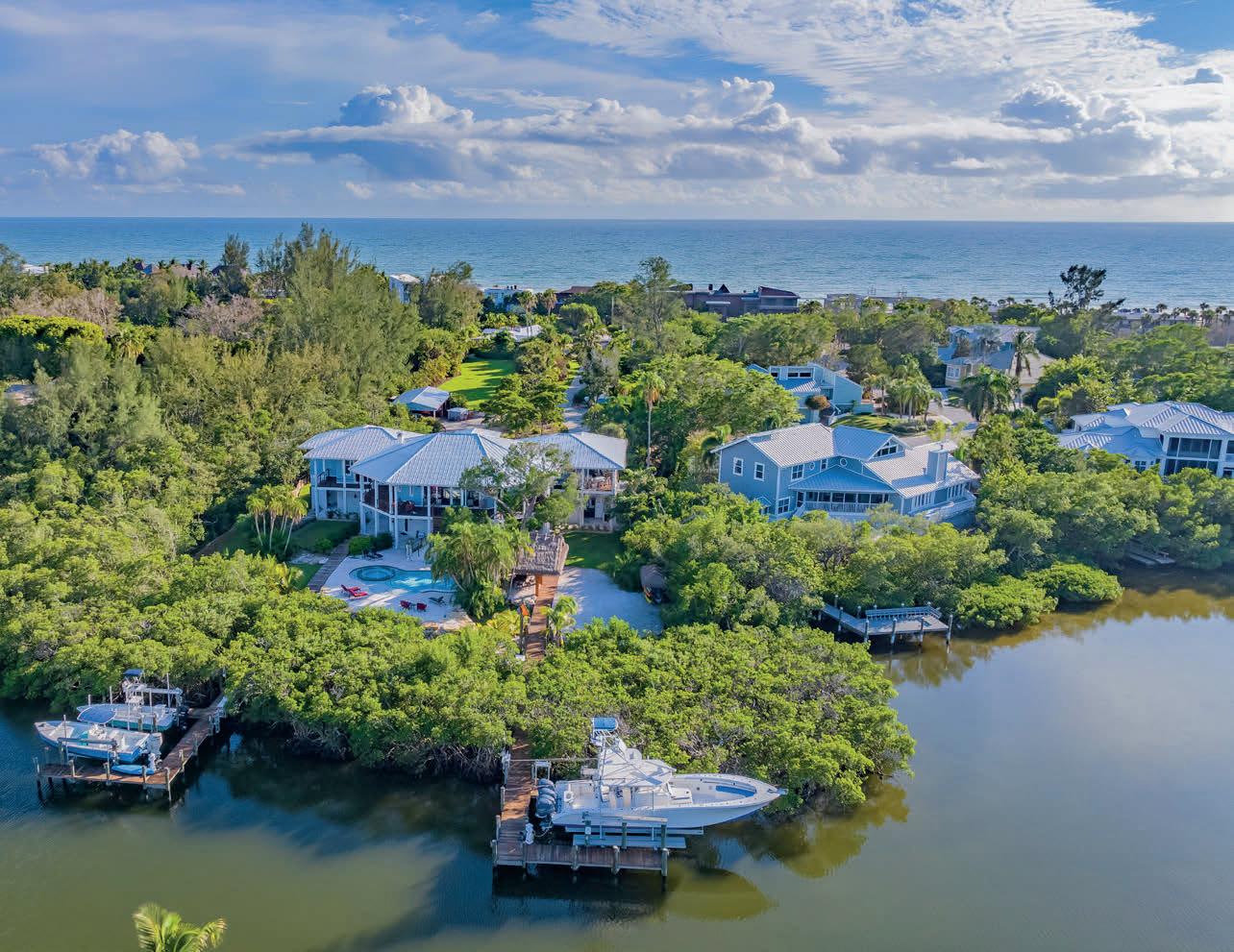 Welcome to one of the most impeccably reimagined residences at 8155 Midnight Pass on the quiet southern end of Siesta Key — a breathtaking bayside coastal estate that artfully blends modern innovation with timeless design. Set on nearly an acre of prime waterfront with 154 ft of shoreline, this gated property offers just under 7,500 sq ft of luxurious living area with more than 9,200 total square feet of combined living and entertaining space, recently transformed through a full-scale two-year architectural renovation by Braidenview Architects and Christner Brothers — winners of the 2024 Aurora Grand Award for Best Renovated Home. From the moment you arrive at the gated motor court, you’ll be struck by the serenity of the grand live oaks, artistically designed landscaping, and elegant curb appeal. Inside, the home, with classical proportions, opens to soaring ceilings, DuChateau European oak flooring, and thoughtful details at every turn — from custom cabinetry and designer lighting to Euro-Wall sliders and state-of-theart automation by Coastal Smart Homes. The heart of the home features multiple expansive living areas, all with views of Little Sarasota Bay and the Intracoastal Waterway from nearly every room, a show-stopping kitchen outfitted with Wolf and Sub-Zero appliances, double islands, and a butler’s pantry make for effortless entertaining. With four bedrooms, 2 of which offer additional sleeping areas in the suites, six baths, a private gym, a large office with two separate workspaces, a sewing/project room, and bespoke closets throughout — every space is both beautiful and functional. Step outside to enjoy a reimagined resort-style pool and new spa, Brazilian IPE decking, and multiple areas to savor sunsets over the Intracoastal Waterway. For boating enthusiasts, there is an impressive 200-foot dock with lift to accommodate a 25’ vessel plus an additional mooring area. Whether hosting a family celebration or simply savoring the coastal breeze, this property is designed for making lasting memories. Plus you are minutes from Siesta Key beach when you want to take a walk and put your toes in the famed quartzsand as you watch the sun disappear into the horizon. With Sarasota’s vibrant cultural offerings, shopping and dining just moments away, you are all set to enjoy every imaginable amenity for an impressive lifestyle.
