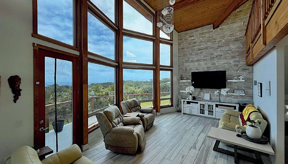 Enjoy coastline views and year-round sunsets from the covered lanai of the 3 bedrooms, 2 baths “main house” with yoga and wellness area; featuring an infrared sauna and outdoor shower. The wellmaintained home has a beautifully updated kitchen with basalt counters, new appliances and copper farm sink. The floor plan has the living and kitchen areas focusing on the expansive views of Pu’uhonua O’Honaunau, Place of Refuge and Kealakekua Bay at a 1400’ elevation.
