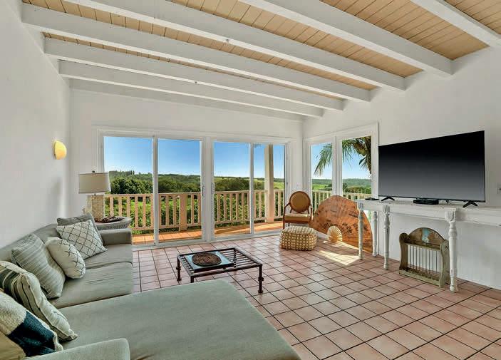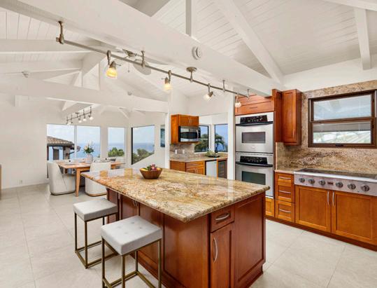 Introducing a masterpiece of modern architecture nestled along the breathtaking oceanfront of Maui’s North Shore, this stunning property offers a seamless blend of sustainable living and timeless design. Embodying the elegance of simplicity, the residence is a livable sculpture in harmony with its natural environment. Two rectangular boxes cantilevered and offset comprise the detached home and office structures, oriented to immerse the resident in the ever-changing palette of makai and mauka views. The bold and clean geometric shapes bathe the interiors in natural light via 38-ft walls of glass. Inspired by globally-renowned architects and ancient design principles, minimalist aesthetics provide for multi-functional spaces and visually pleasing storage solutions including 9-ft sliding shoji doors made from exquisite Hawaiian koa wood to create a “box within a box.” All of the heirloomquality woodwork was custom crafted locally, adding warmth and sophistication in the form of functional artwork. A generous lava rock outdoor shower epitomizes indoor-outdoor Haiku living along with durable wood-stamped concrete flooring throughout. Embracing off-grid design, the property is equipped with a state-ofthe-art photovoltaic system, catchment water with reverse osmosis UV filtration, and high-speed fiber optic internet, ensuring an eco-friendly lifestyle without compromising on modern comforts.