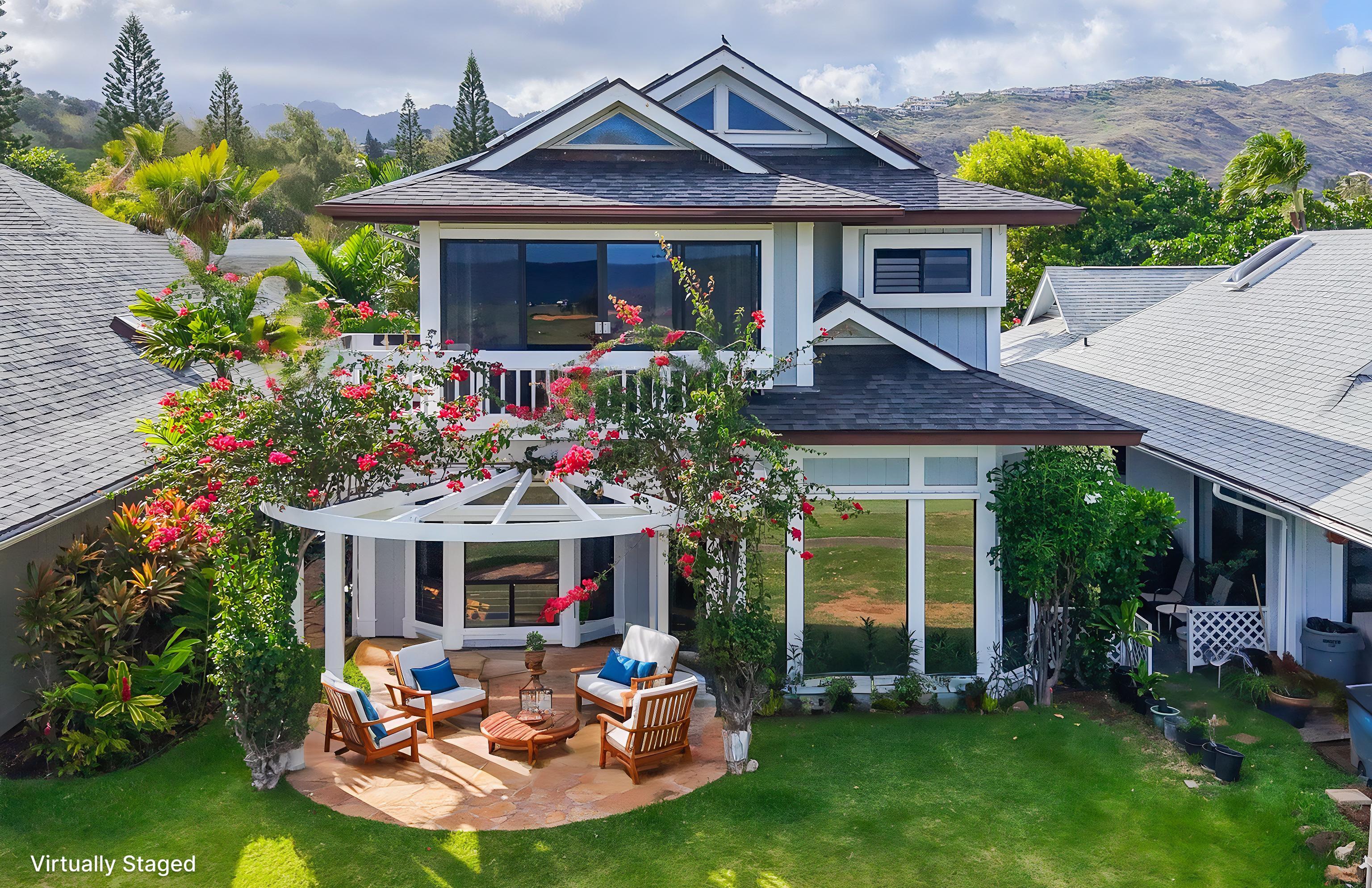 This beautifully remodeled 4 bedroom, 2.5 bath, 2 car garage SFR is nestled in a serene cul-de-sac. As you enter, you’ll be greeted by Tropical landscaping by Malama Aina in the courtyard. As you come through the main door, you’ll see an open concept living space flooded with natural light and showcasing unobstructed views of the ocean and golf course. The kitchen features stainless steel appliances, quartz countertops and ample storage. The primary suite is a true sanctuary, complete with a private en-suite bathroom and mesmerizing views that will make waking up a delight. 3 additional bedrooms upstairs provide plenty of space for family or a home office. Special amenities include PV, Solar Hot Water and a Soft water system. First time on the market by the original owner, it’s not just a place to live, it’s a lifestyle. Experience coastal living, just steps to Sandy beach, golf courses and vibrant community amenities. With Costco, Safeway and restaurants nearby, the location can’t be beat. Don’t miss your chance to own one of Hawai’i Kai’s rarest gems. Schedule your private showing today & experience the views and tranquility for yourself.