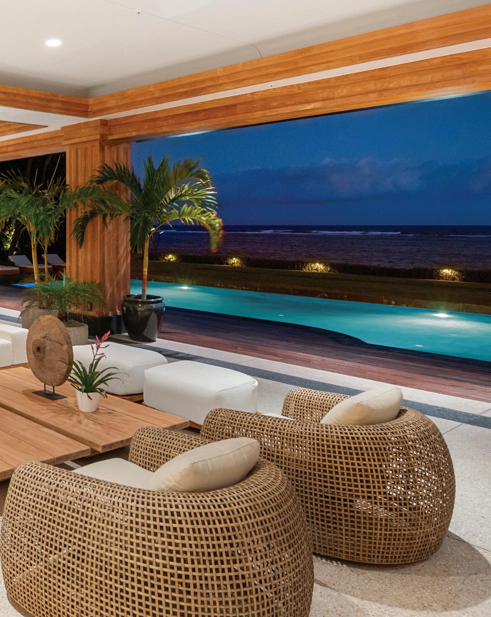 This estate spans over 33,800 sq ft on a private peninsula between Kailua Bay and Kawainui Canal. Blending Balinese & Hawaiian styles, this singlelevel residence exudes elegance. 5,804 sq ft of luxurious interiors flow into 2,597 sq ft of expansive covered lanais with multiple gardens & immaculate outdoor spaces.