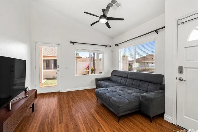 Very clean 3 bed, 2 bath home in desirable Alii Heights, with an oversized lot of 19,000+ square feet! Former model home with updated interior, including newer bamboo flooring. Enjoy an easy flow of indoor to outdoor living with sliding glass doors from your living room, dining room, and primary suite to your wraparound lanai. Home boasts central A/C throughout plus a fully owned photovoltaic system, to help keep your electric bills low! Contact Kris today, or scan the QR code today to learn more!
