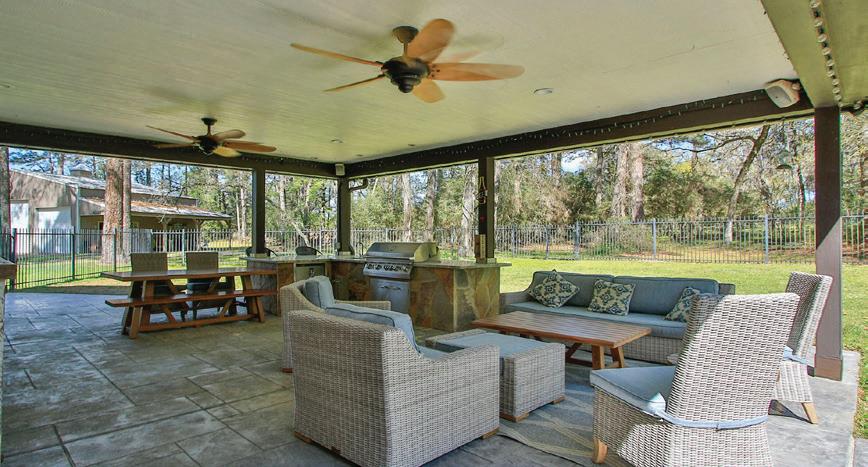 Escape to luxury on this gated +/-39 acre Magnolia estate with a customupdated ranch home, resort-style pool/spa, and premium equestrian amenities. The 4-bedroom layout includes a private study with en-suite, ideal as a 5th bedroom or guest space. Vaulted ceilings, reclaimed hardwoods, and a double-sided fireplace elevate the interiors, while the gourmet kitchen features a built-in Sonic-style ice maker, GE Monogram appliances, and granite counters. Outside, enjoy a lighted sand volleyball court, 30’x60’ garden, and flagstone terrace. Equestrian features include a 5-stall barn, 150’x300’ lighted area, and fenced in property. A 3-car garage with a climate-controlled gym area with full RV hookup, 50’x75’ enclosed shop, 3 generators, three water wells, and extensive infrastructure make this a rare turnkey opportunity in scenic Montgomery County all within an hour from Houston, the Woodlands, Cypress and College Station.