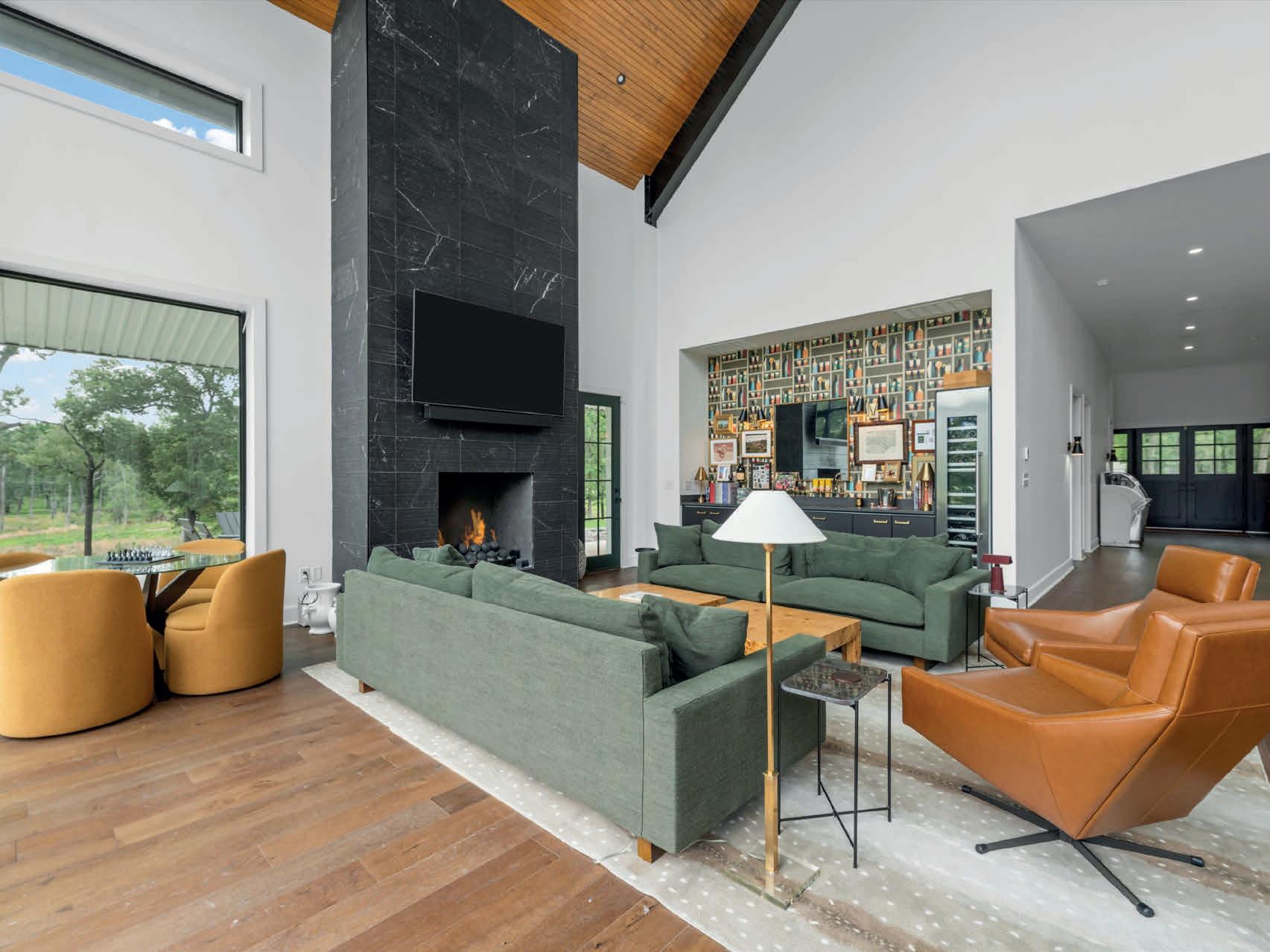 Nestled within the prestigious Nine Bar Ranch community, this 11.55-acre equestrian estate offers a rare blend of modern comfort and rural elegance. The custom-built home showcases soaring vaulted ceilings, artisan knotty alder doors, a grand stone fireplace, luxury vinyl planks throughout and a gourmet kitchen with high-end appliances. Equestrian enthusiasts will appreciate the professional-grade barn featuring four stalls, a climatecontrolled tack room, wash rack, and a private guest suite with a full bath. The property is double fenced with three separate pastures with riding alley. Find comfort in an electric gated entry, a comprehensive security system, a 40’x60’ workshop tall enough to accommodate an RV with hookup, and a covered back patio for outdoor living. Located just minutes from Brenham, Cypress, Navasota and College Station, with major retail and grocery development underway nearby, this turnkey estate offers an ideal blend of seclusion and accessibility.