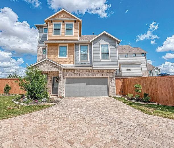 An exquisite collection of 4 freestanding homes in a gated community with NO HOA! These meticulously designed homes offer 3 bedrooms, 2.5 bathrooms, and are thoughtfully crafted with seamless flow, clean lines, abundant natural light, small gardens, blinds throughout and the peace of mind of a builder warranty. The first floor offers two bedrooms, a full bathroom, and a bench area for backpacks, coats and storage. The kitchen is a true standout - featuring stainless steel appliances, a farmhouse sink, two toned cabinetry, quartz countertops, and floating shelves. Upstairs, experience the grandeur of the open-concept living/dining/kitchen space with soaring 16 foot vaulted ceilings and beautiful LVP floors. The luxurious primary suite includes an en-suite bathroom with a walk-in shower, double vanities, a transom window, and a spacious walk-in closet. Conveniently located near I-45 & 610 & just 12 minutes from Whole Foods, Aldi, and HEB!