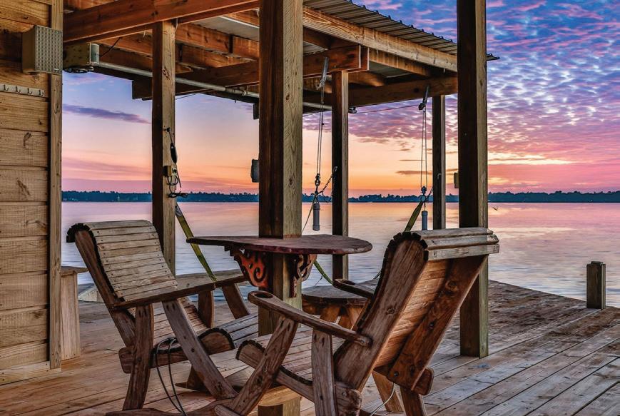 Tucked away on 1.8 acres, this upscale waterfront retreat offers the ultimate in outdoor living and seclusion - you won’t see a neighbor in sight! Enjoy expansive open water views and breathtaking sunsets from your multi-level back deck designed for entertaining or relaxing. Complete with an outdoor kitchen, fireplace, children’s play area, hot tub, and a built-in sound system, this outdoor oasis is ready for yearround enjoyment. Meander down to the boathouse and hop on the boat or jet skis for a day of fun on the lake. Inside the open-concept layout connects the living areas seamlessly and the beautifully appointed chef’s kitchen flows to a breakfast bar with pass-through windows that frame the stunning lake views. With 3 bedrooms plus a dedicated office that can serve as a fourth bedroom, there’s room for everyone to spread out. Luxury touches continue throughout with a whole-home generator, spider-be-gone system & water filtration/softener system.