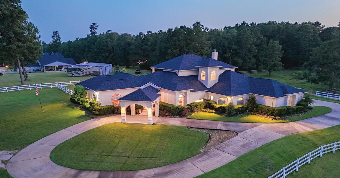 Exceptional 19-acre equestrian estate offering refined luxury and elite-level amenities. The 5,436 sq ft custom home features soaring ceilings, tile throughout, a chef’s kitchen with Sub-Zero and Wolf appliances, dual islands, butler’s pantry, and a serene primary suite with two ensuite baths and custom walk-in closet. Enjoy a screened porch, media room, and multilevel, dual laundry setups. Equestrian facilities include a regulation dressage arena, 6-stall insulated barn with tack room, wash bays, and geo-grid turnout runs. A 1,200 sq ft insulated shop with A/C and half bath adds flexibility. Entire property is fenced and cross-fenced with engineered drainage, powered pond, 60kW whole-home generator, and outdoor living with fireplace and kitchen-ready setup. No HOA, ag exemption in place, and ideally located in the esteemed high-growth corridor of Houston Oaks Township. A rare offering combining sophistication, performance, and long-term value.