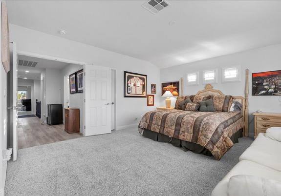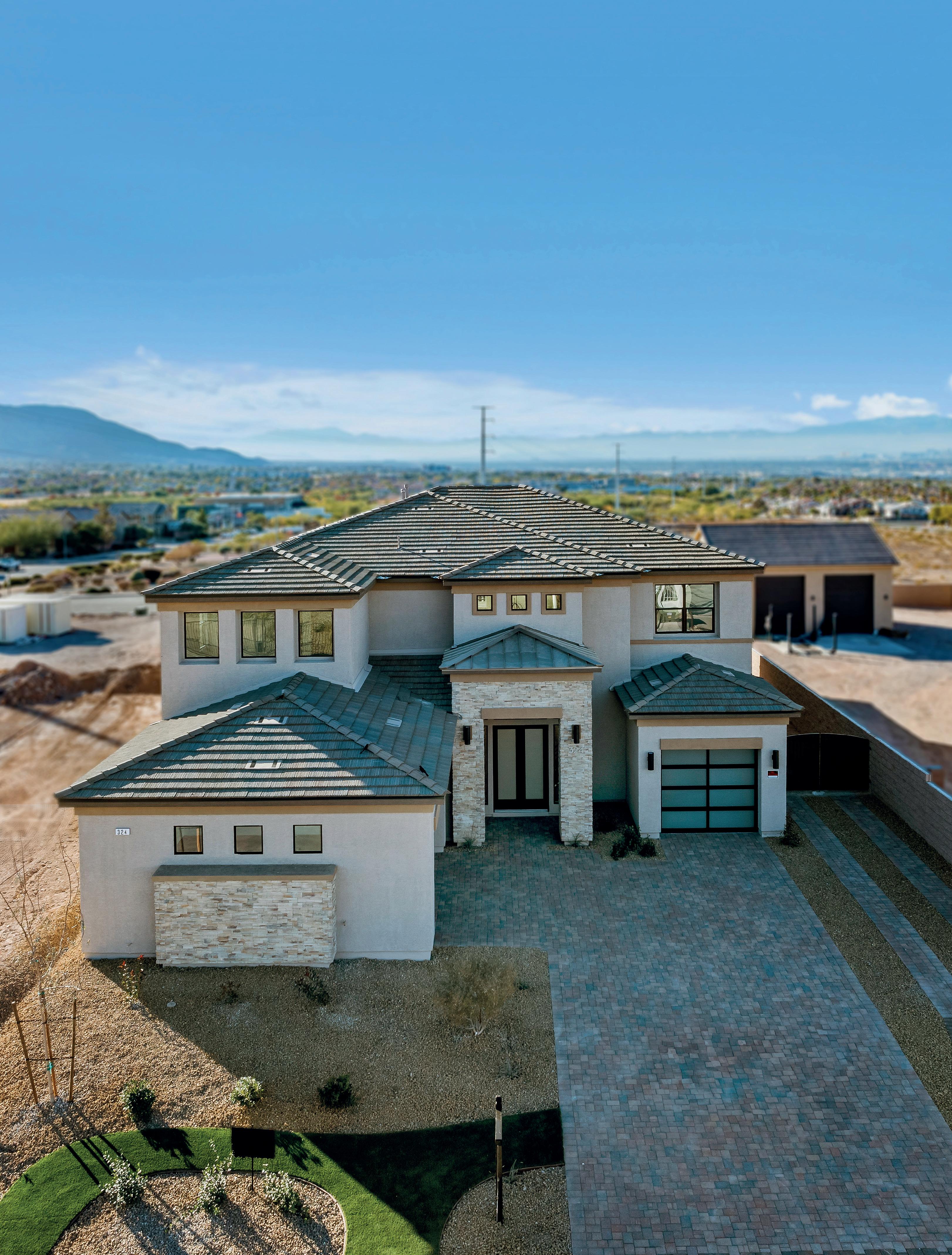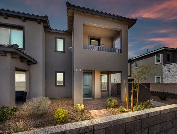 • Home 2: Designed to live like a single story, this spacious residence features the primary suite and two bedrooms on the main floor, plus a large loft, office/exercise room, and one additional bedroom upstairs. A 700 sq ft covered patio captures sweeping views of Downtown Las Vegas, the Strip, and nearby mountains. Estimated completion: February 2026.