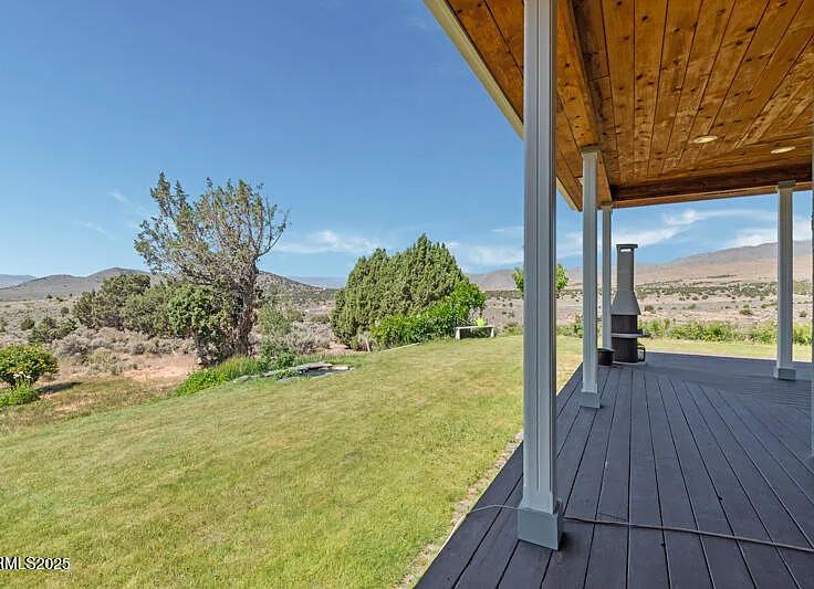 This beautifully maintained 5-bedroom, 3-bath home boasts breathtaking panoramic vistas of Ruby Mountain and impressive curb appeal. Relax on the freshly stained covered porch—perfect for morning coffee or evening unwindings while soaking in the fresh mountain air.