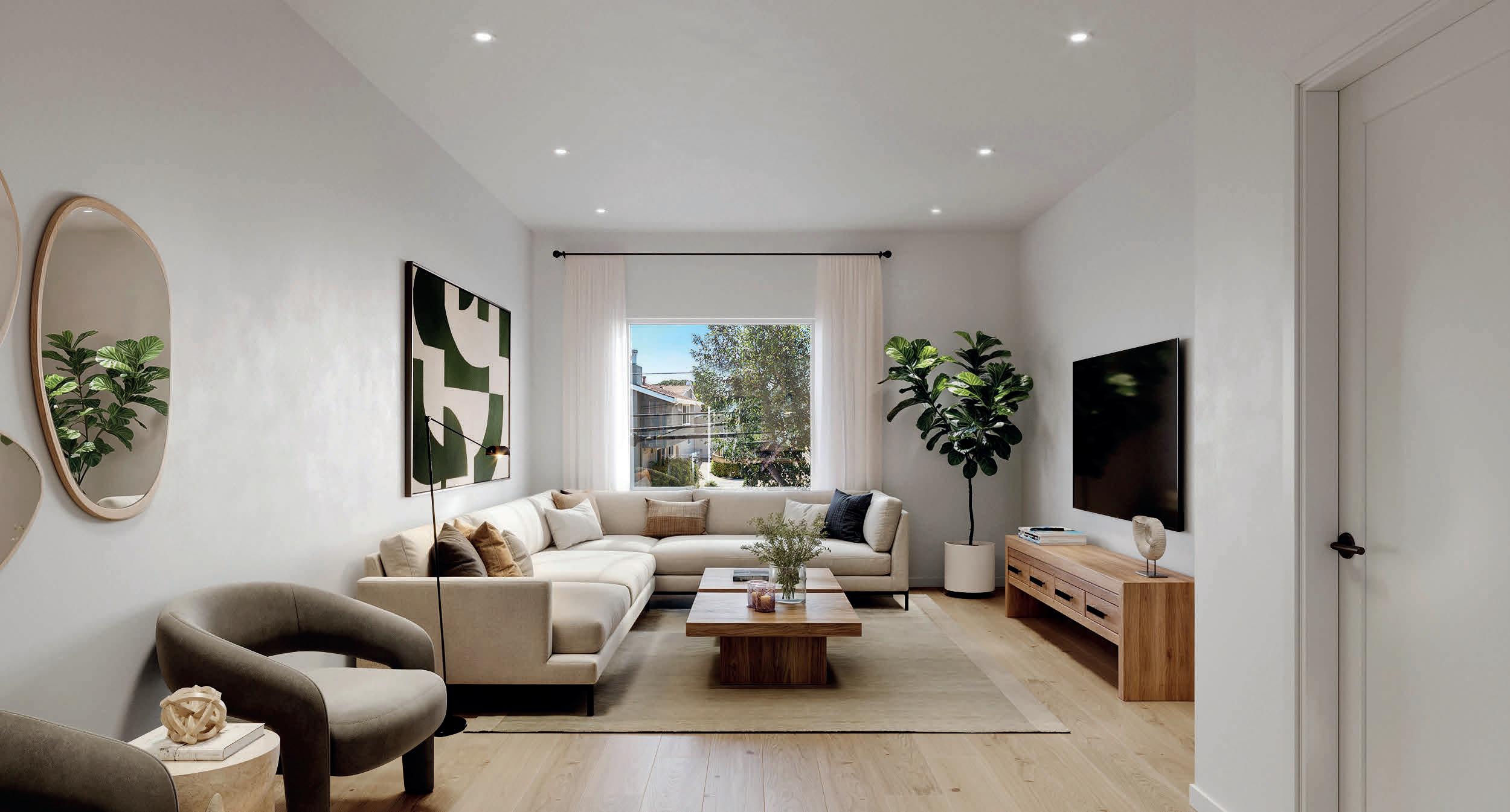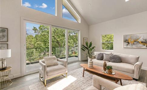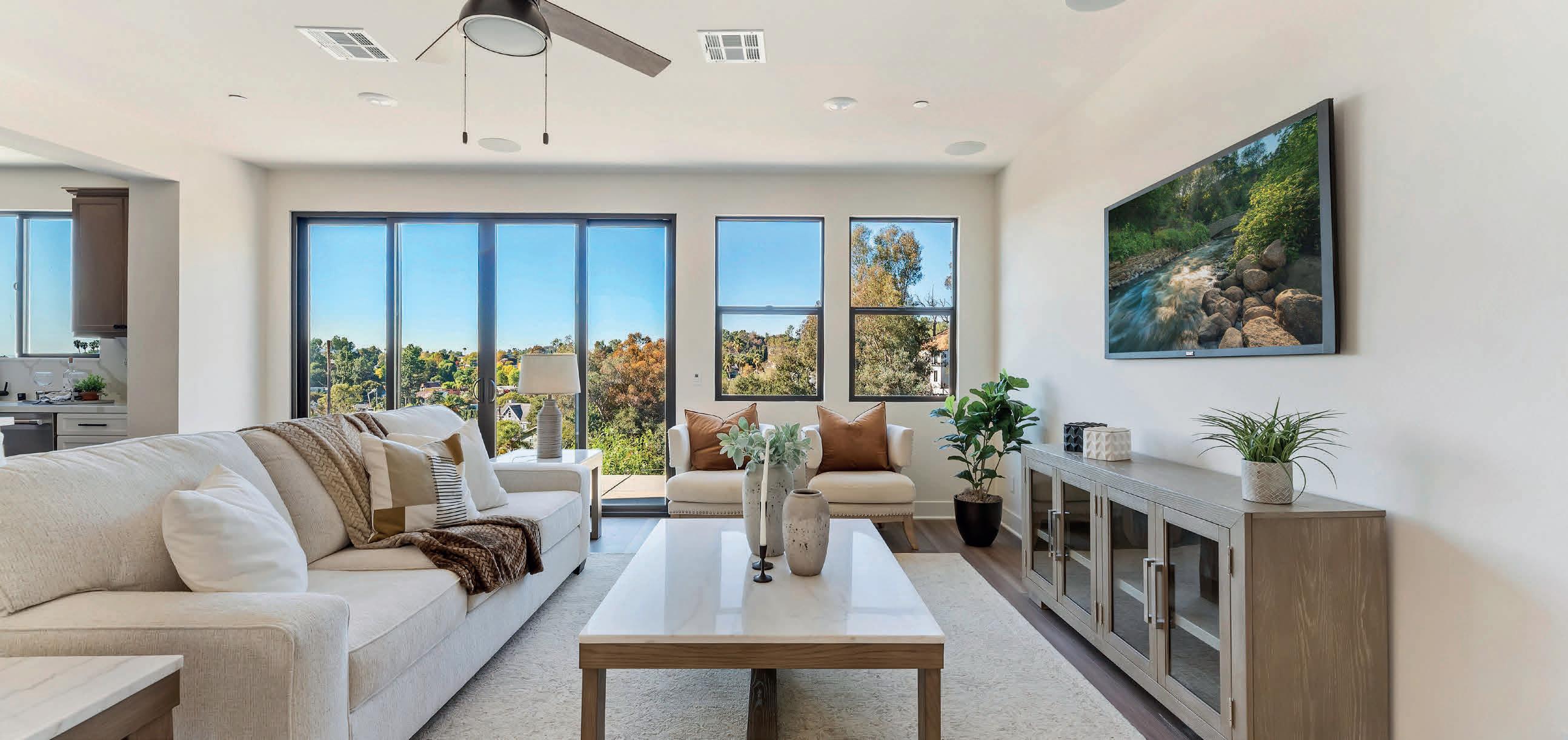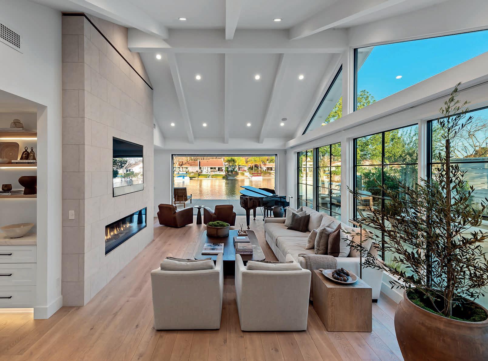 ■ Open-concept living area with bright and airy open spaces, oversized windows, and elegant fixtures