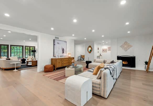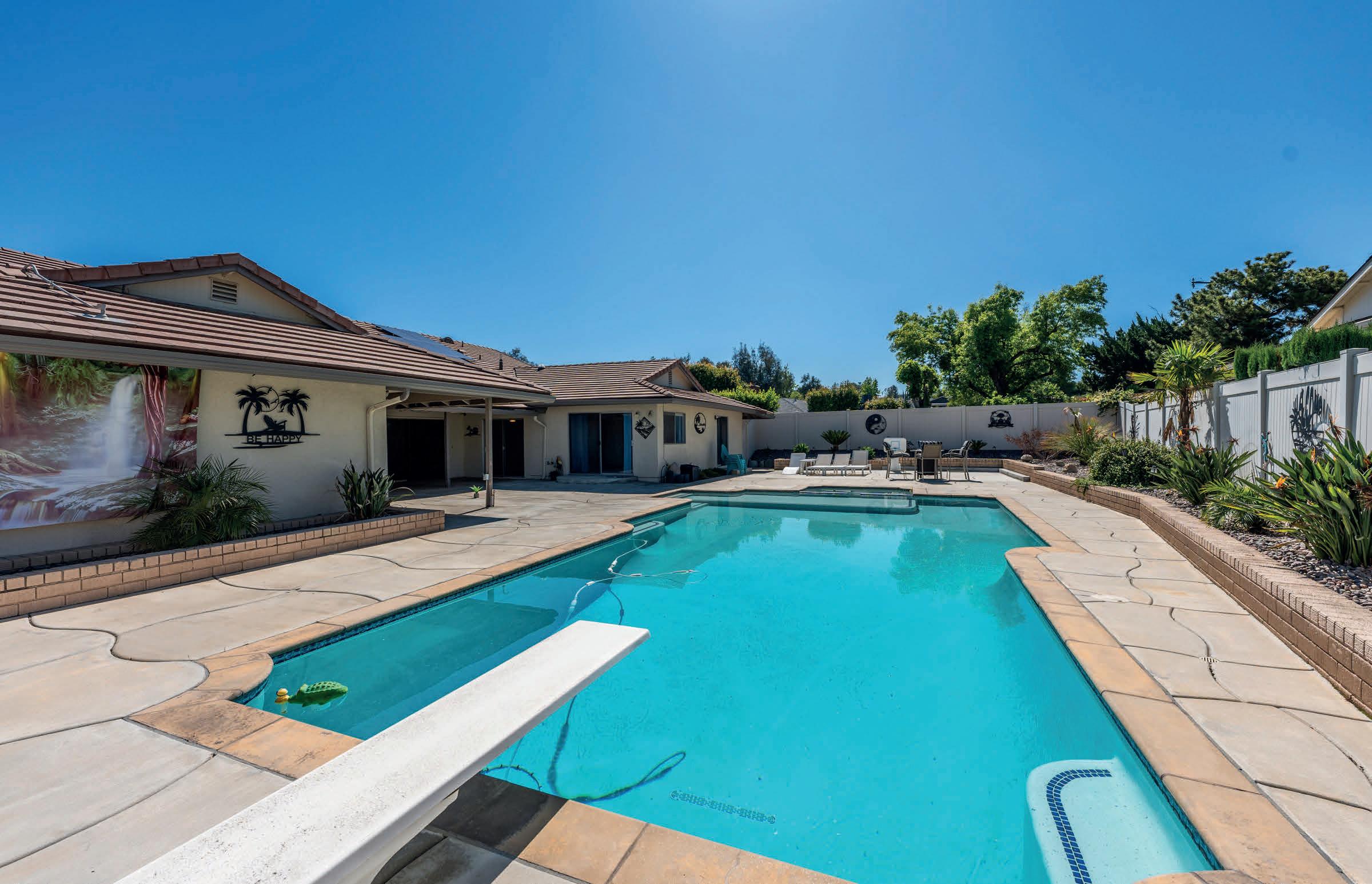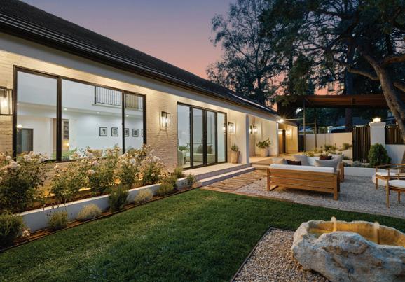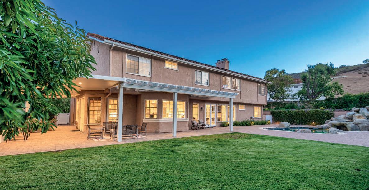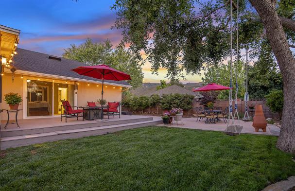 Reimagined, not just remodeled—this single-story home is the essence of Casual California Style. Situated on a cul-de-sac in the Oak Park enclave, neighboring Agoura Hills, North Ranch and Westlake Village. This home encompasses the best of modern elegance while being inviting, comfortable, and effortlessly stylish. Living areas are all adjacent to the foyer and main hall, with a substantial game/bonus room, formal living and dining rooms. The kitchen and family room overlooking the pool and lush yard. The formal living/dining rooms are open, airy, and light filled with vaulted ceilings. This space encourages both intimate or larger entertaining options. The vaulted ceiling transitions to flat a ceiling at the dining room, defining the space. Just inside the entrance is the game/bonus room that features a 7-speaker surround sound set up, space for billiards, gaming, and movies. Finally, the comfortable—yet chic family room, chef’s kitchen, and informal dining area all overlook the pool, towering pines, and oaks with direct access to the outdoor entertainment areas and BBQ. center. The primary suite is serene and spacious with two large walkin closets and a spa-like ensuite bath. The primary bath features a freestanding slipper tub, long two sink vanity, private w.c., and an elegant and spacious shower. There are four secondary ensuite bedrooms – all with walk-in or large wardrobe closets and remodeled private bathrooms. Two of the secondary bedrooms are located off the hall leading to the primary suite and the other two are off the game/bonus room. Surrounded by tall pines and oak trees, privacy abounds in the back yard that includes a gorgeous pool with serene waterfalls and spa. The covered patio incorporates several areas of seating: alfresco dining near the BBQ center, casual seating on the opposite side, and a circular fire pit with a flat screen television. Created to enjoy a quiet dinner, a boisterous pool party, or host the playoffs - this backyard has it all. The light color palette combined with natural materials of stone and wood create a home that is right for living and entertaining in the long term. In addition, there is an owned Panasonic solar system with two Tesla Powerwall units and an EV charger. The pool was recently remodeled with custom mosaic tile, pebble tec, and a newer heater. The yard was recently re-landscaped with a new irrigation and drainage system that features a combination of drip and sprinklers.