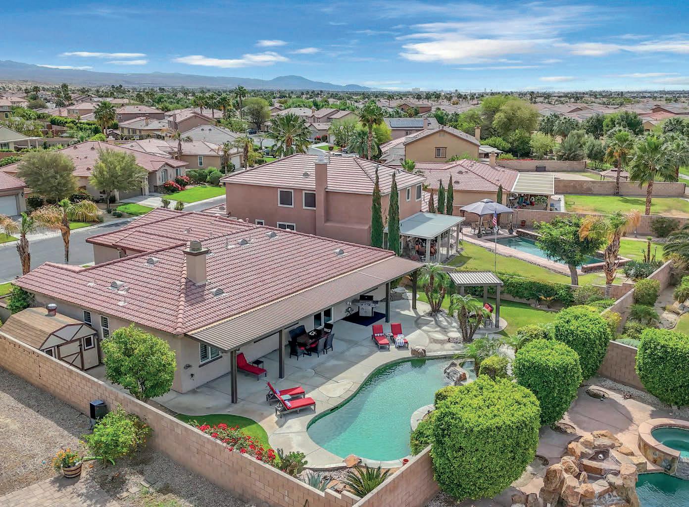 Indio is eligible for our exclusive $15,000 Buyer Assistance Program—a forgivable loan that can be applied toward closing costs, interest rate buydown, or your down payment. It comes with no interest, no monthly payments, and is fully forgiven after five years. FURNISHED? Gated, San Milan at Paradiso is perfect for Families, Snowbirds, First time home owners: This spacious 4 bed PLUS Flex space or office, 3 bathroom PRIVATE POOL home features a separate master suite, perfect for families or snowbirds looking for a retreat. The stunning kitchen boasts high-end appliances, slab granite countertops, and custom banquette seating in the breakfast nook. The open floor plan leads to a large tropical backyard with a saline pool, spa, and mountain views. The living area includes a cozy fireplace and custom built entertainment center, ideal for hosting family and friends. With low Mello Roos and a large lot, this move-in ready home is perfect for investors or those looking for a new family home. Low, Low, HOA. IID Power, Great schools! Don’t wait, schedule a showing today before it’s too late!