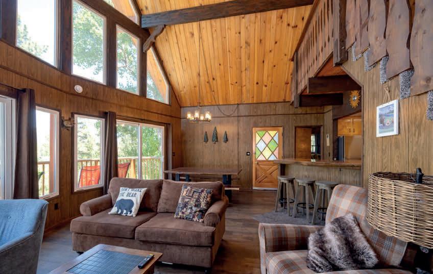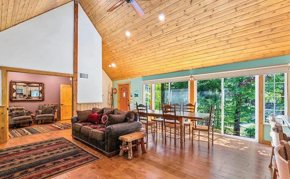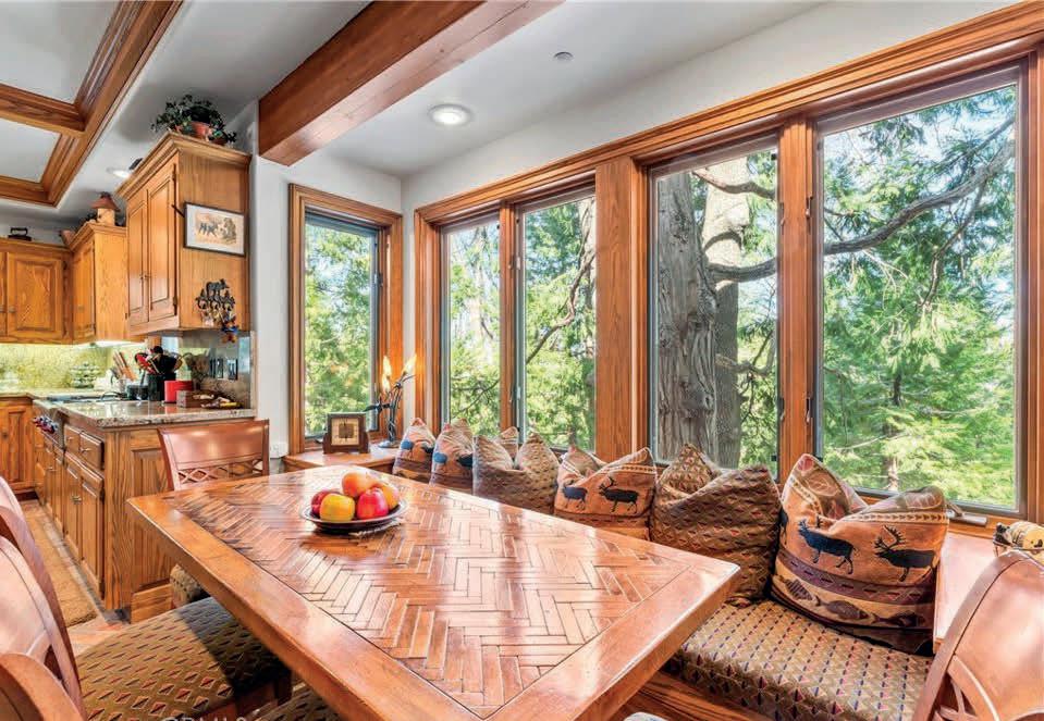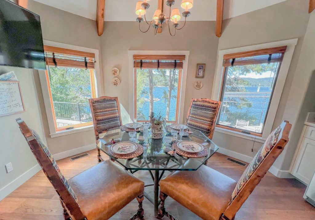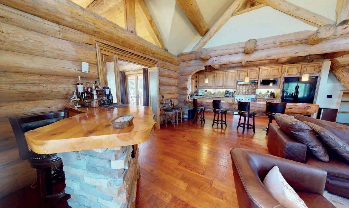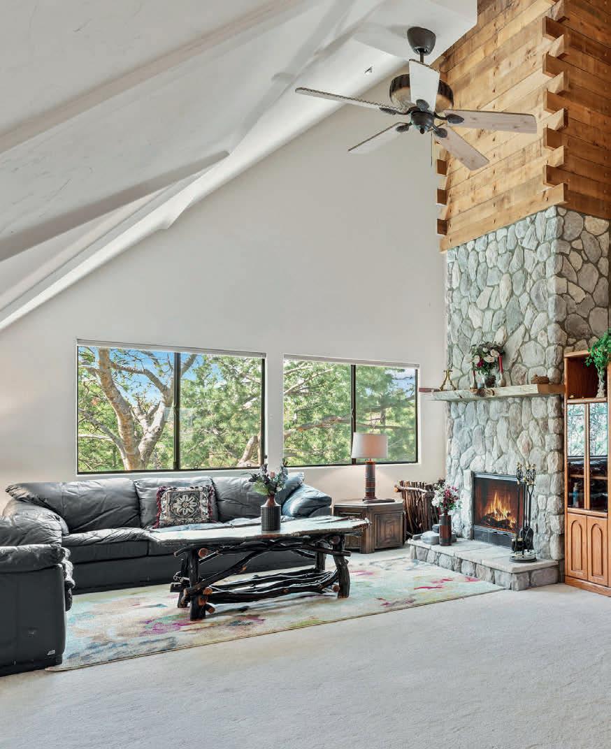 This exceptional Mountain Lodge, crafted by the Ron Dolman, exemplifies unparalleled craftsmanship and timeless elegance. Designed to harmonize with its natural surroundings, the residence features a distinctive slate roof, adding to its rustic charm. Upon entering through the custom-built double doors, you’re greeted by soaring vaulted ceilings that create an immediate sense of grandeur. The open-concept design seamlessly connects the dining area, a chef-inspired kitchen, and a cozy family room, making it ideal for both intimate gatherings and large entertaining. A rare find, the main-level master suite offers privacy and convenience. French doors open to expansive decks providing a tranquil retreat. Through the trees, a filtered lake view adds to the room’s serene ambiance. Ascending the sweeping solid oak staircase leads to four generously sized bedrooms, each accompanied by its own private en-suite bathroom. This thoughtful design ensures comfort and privacy for all. The lower level is designed for leisure and entertainment, featuring a spacious game room complete with a wet bar. A full bathroom and a substantial storage room add to the functionality of this space. Catering to outdoor enthusiasts, the property includes an RV/boat garage equipped with a workbench. Additional parking accommodates at least seven vehicles, including boats and RVs, ensuring ample space for all your recreational needs. A spacious office located below the RV garage, accessible via dual entries, offers a quiet workspace, ideal for remote work or study. Surrounded by majestic cedar trees and the tranquility of nature, the home emphasizes indoor-outdoor living. Multiple decks invite relaxation and provide the perfect setting for enjoying the serene environment. Offered fully furnished, the property includes all fine furniture and decor, allowing for a seamless transition into this mountain sanctuary. This residence is a rare gem, combining luxurious amenities with the natural beauty of Cedar Ridge, offering an unparalleled mountain living experience.