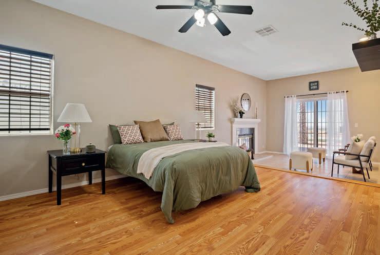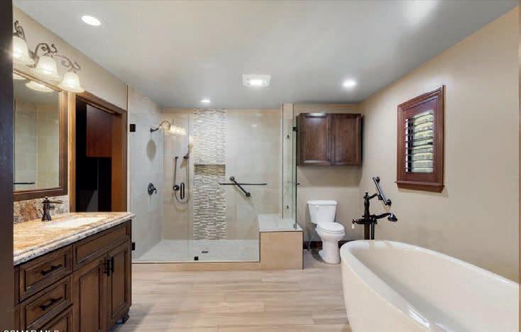 ■ Spacious primary suite with sitting area, fireplace, and spa-inspired bathroom