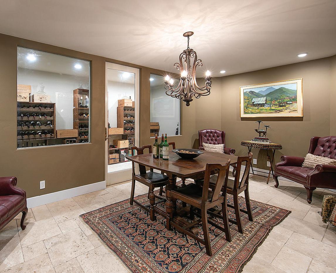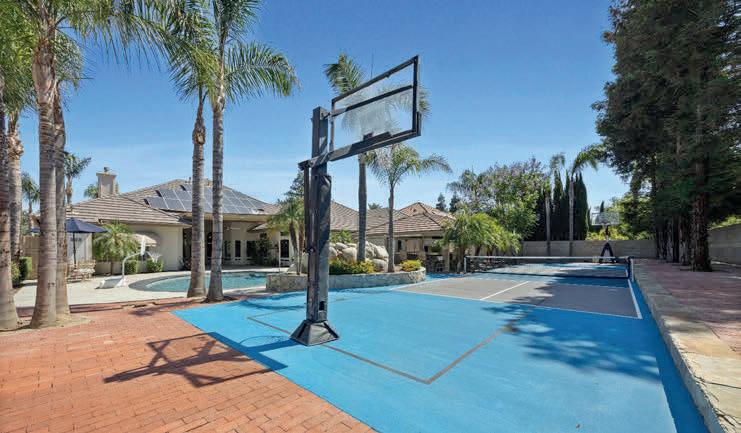 large entertaining pavilions to enjoy the tranquility and greenbelt views. The lush private back yard which is truly an oasis has built-in BBQ, covered outdoor dining patio & Cabana with TV & Fireplace, beach entry lagoon style pool/spa w/ waterfall, huge lawn & professional lighted N/S tennis court and sports court. This amazing yard also boasts your own private garden, citrus / fruit / avocado trees and storage sheds. Upstairs features a private master suite w/ fireplace, three walk in closets, mountain and valley views, luxurious bath w/ soaking tub & gym/office. There are 4 additional bedroom suites upstairs w/ two massive balconies + office/conference area in the center of the home. There is an addtl bedroom suite off kitchen, two garages (4 cars) all with custom built high end storage cabinets and acrylic floors perfect to store your super cars or classics & space for 10+ cars in the rounded entryway. This property also has a temperature controlled wine cellar and a features a rarely found safe room / artillery room. This smart home features an RTI system which controls A/V systems throughout the home, HVAC, lights and cameras. The home is being offered fully furnished including all A/V systems and theatre equipment. If you are looking for an amazing property, this is a very rare find that has been meticulously cared for.