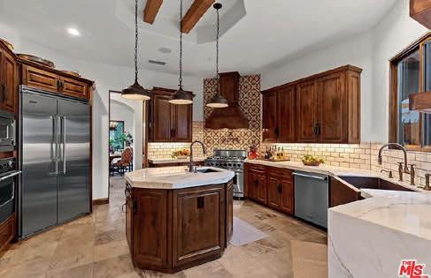 One-of-a-kind Trophy Property, located in the Most Prestigious Gated Development known as “Park South Estates” with a Prime Calabasas location. This incredible Contemporary Mediterranean Estate is nestled at the end of a private cul-de-sac and features 6 beds, 9 baths with approx 8,152 sq ft sited on approx 8+ private manicured acres. This beautifully designed estate has everything that anyone could ever ask for. It feels like you are living in your own private resort. This estate has the utmost impeccable attention to detail with quality and craftsmanship second to none. The home features a Grand Formal entry w/ soaring ceilings which leads you to a light filled 2-story living room with a custom 30-foot matched marble fireplace, custom lighting and a beautiful formal dining room. White Oak hardwood floors throughout all living areas, custom designed window coverings, Chef’s kitchen w/ massive island, quartz countertops, stainless Sub Zero Refrigerator & Freezer, Wolf 6 burner range, Wolf Stainless Double Ovens, Dual SS Dishwasher, Micro and more. Wonderful breakfast bar, walkin pantry adj to the kitchen, and living room w/ stone fireplace and large built-in custom cabinetry. Secondary formal living room, billiards room with full wet bar & 21 seat commercial style theater adorn the other side of the first floor. There are several