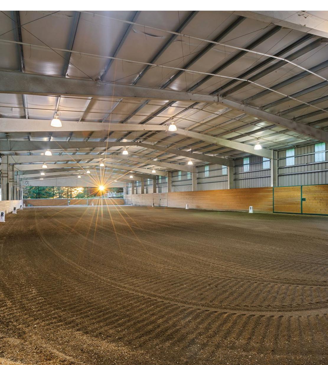 “Ten warmblood stalls, an Olympic-size dressage arena, and sweeping pastoral views define the estate—yet it’s the harmony between elegant design and true equestrian purpose that sets it apart.”