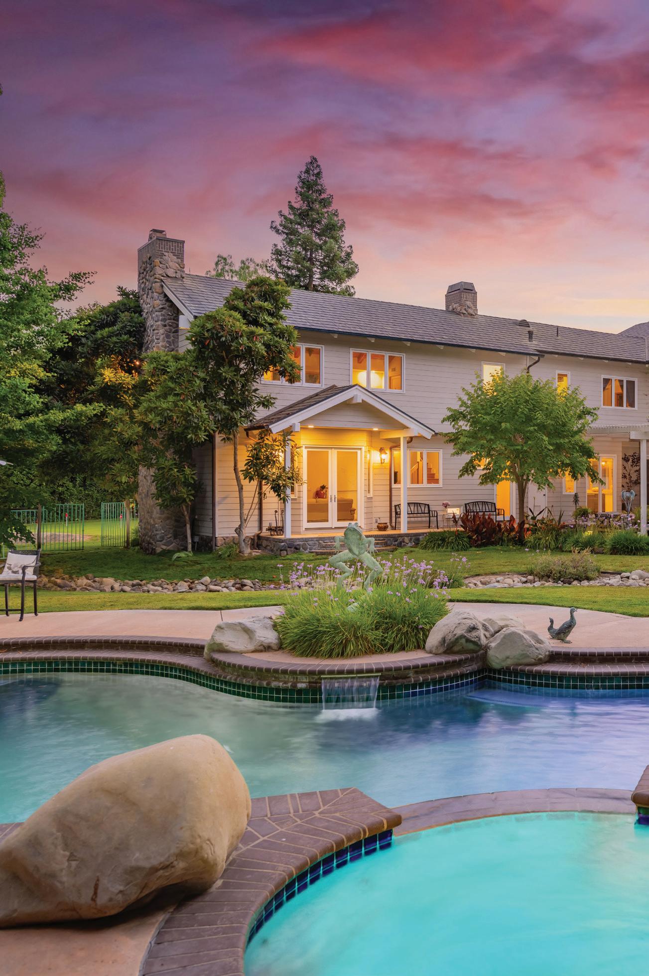 Royal Oaks – 5 gated, private acres close to downtown with wrap-around porch, 5 bedrooms, media room, wine cellar with tasting room, library, gym/massage room, 4 fireplaces, pool and spa, sauna, family orchard, olive tree orchard with approximately 30 trees, Bocce court, putting green, volleyball court, chessboard, gazebos, pasture, private well, 150-year copper roof, copper gutters, RV parking with hookups, six-car garage and workshop, and more.