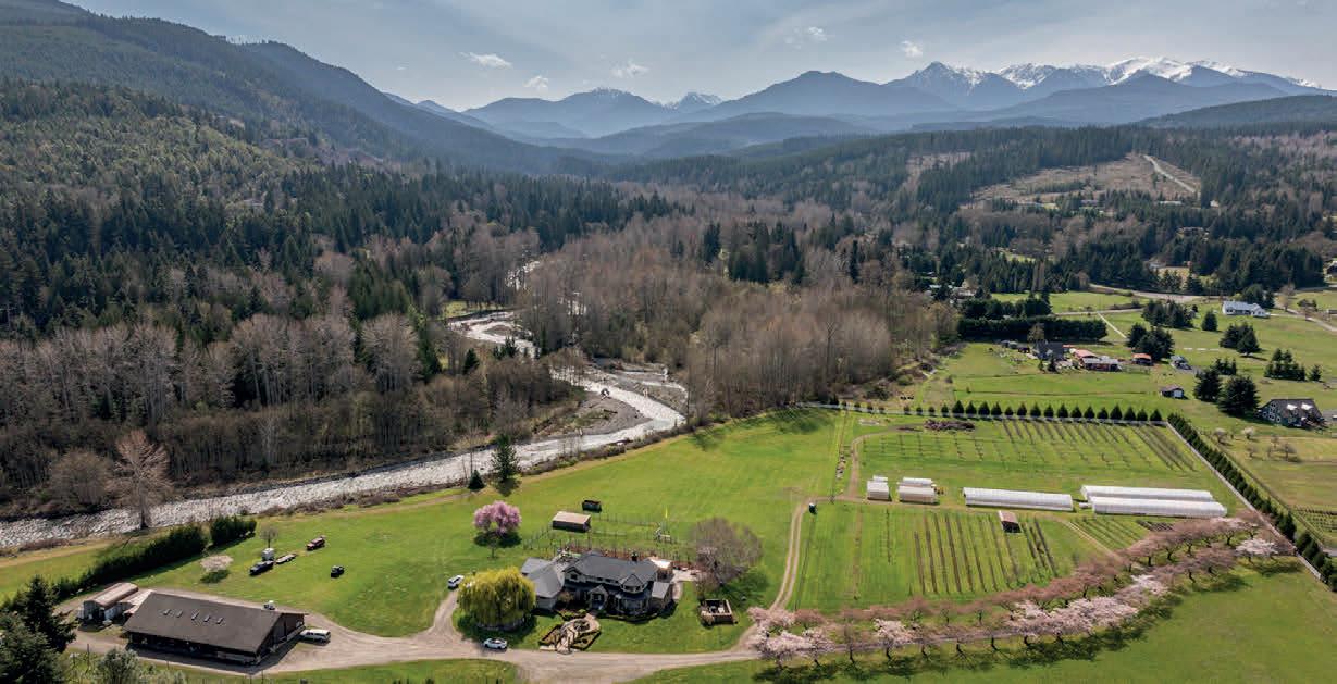 This Empire-era manor on 18.75 acres with a quarter-mile of Dungeness River frontage blends old-world craftsmanship with modern luxury. Featuring custom Honduran mahogany paneling, antique chestnut floors, and steel-timber details, the 4,797 sq ft home is both grand and cozy. A cherry-lined driveway leads to the estate with organic-certified farmland, a large ag building with a commercial kitchen, helicopter/high-bay garage, and equipment bays. The home boasts river views, a Japanese joinery walkway, luxurious interiors, a gourmet kitchen, media room, office, and expansive outdoor entertaining spaces, including a pizza oven, fire pit, pergola, and more. A rare mix of elegance, function, and natural beauty. https://vimeo.com/1080586896/ad1418a8c2?share=copy 4