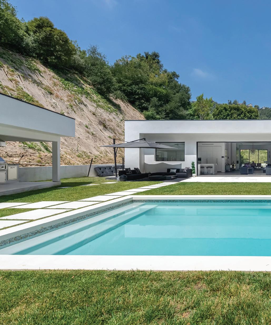 Welcome home to 9924 Liebe Drive, an ultra-modern sanctuary tucked into the serene and coveted Beverly Crest neighborhood of Beverly Hills. Located behind private gates, this single-level dream home was flawlessly built in 2018 boasting 3 bedrooms, 4.5 bathrooms on an expansive and secluded 60,804 sqft lot. Designer-perfect from top to bottom, this fully custom oasis features 11 foot high ceilings, an abundance of natural light through four large skylights, Fleetwood door package, black oak herringbone floors, Italian cabinetry, Rimadesio glass doors and marble finishes throughout. The spacious primary bedroom includes a walk-in closet and en-suite bathroom with heated flooring. A gourmet chef’s kitchen houses Wolf and SubZero appliances, a warming drawer, in-island refrigerated drawers and double sinks for convenience. Floor-to-ceiling, 28 foot, sliding glass doors lend themselves to an indoor/outdoor luxury lifestyle where the main living area flows seamlessly to the tranquil backyard offering ample space for entertaining. A comfortable lounge area, pool with automatic cover for convenience and safety, and separate cabana with gym and full steam room create the perfect environment to enjoy year-round. This home is the definition of ‘style meets comfort’ offering residents luxe amenities including Tesla solar, an EV charging unit, Control4 Smart System that manages surround-sound speakers, security cameras, lighting, temperature and more; all from the convenience of your phone or one of the in-house tablets.