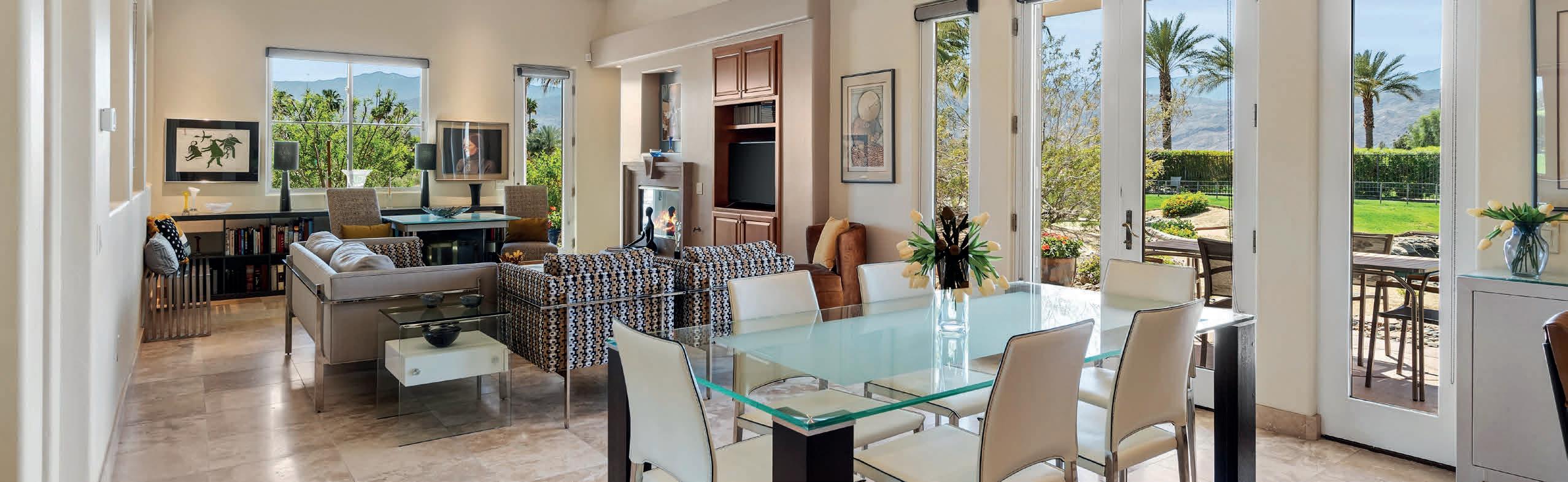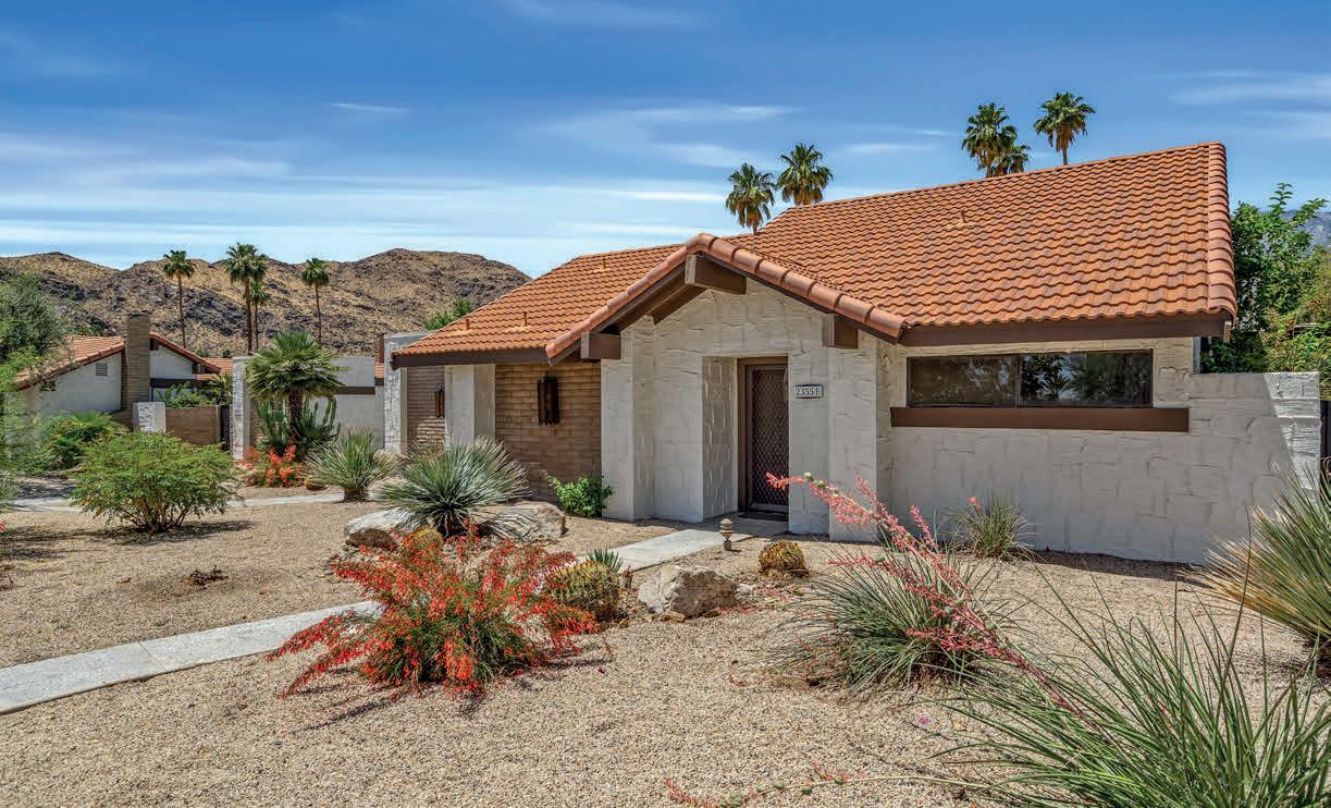 Enjoy a fully modern remodel of a true desert gem. This stunning condominium, located in the southwest corner of the complex, is the perfect blend of luxury and style. Enter into the elegant interior, adorned with porcelain tile floors that seamlessly connect the living and dining areas. Beyond, an expansive enclosed patio provides a tranquil location to savor your morning coffee or al fresco dining, with stunning views of the San Jacinto mountains. The primary suite provides serenity and privacy, while a smaller ensuite bedroom offers a sanctuary complete with direct patio access. A chef-inspired kitchen boasts custom cabinets, quartz countertops, and stainless appliances with new Liebherr refrigerator and luxury ZLINE dishwasher.